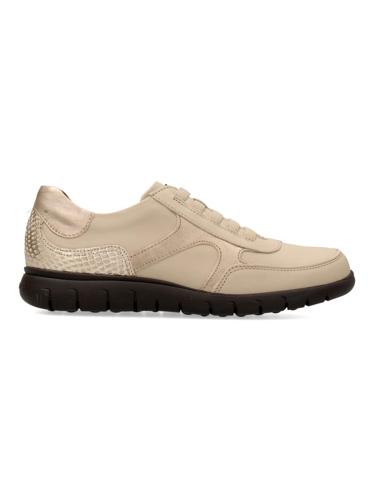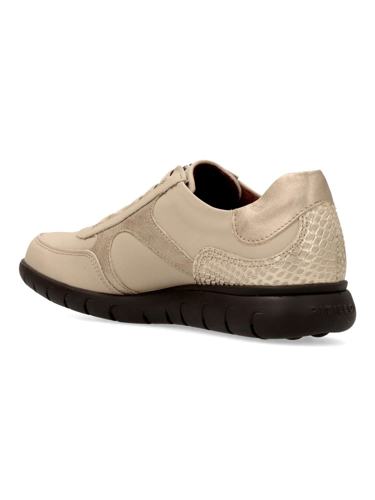 Zapatilla deportiva de mujer, estilo casual. Cierre cordón elástico. Fabricado con capas superpuestas de piel de alta calidad. Plantilla acolchada y extraíble. Diseño versátil, elegante y cómodo, que no querrás quitarte este invierno.