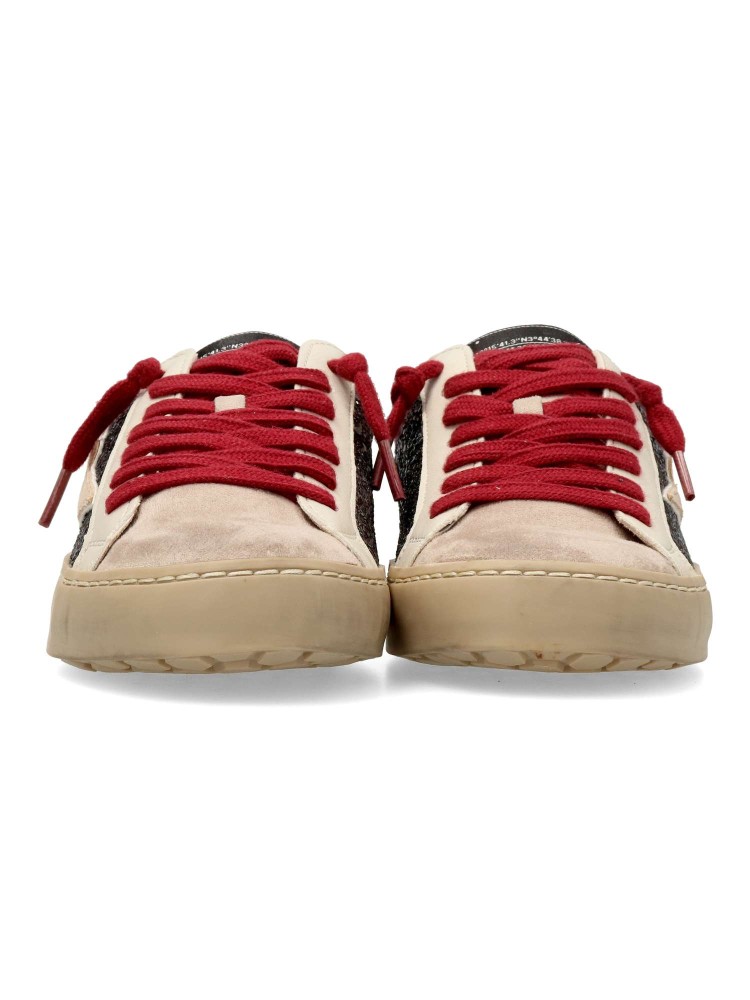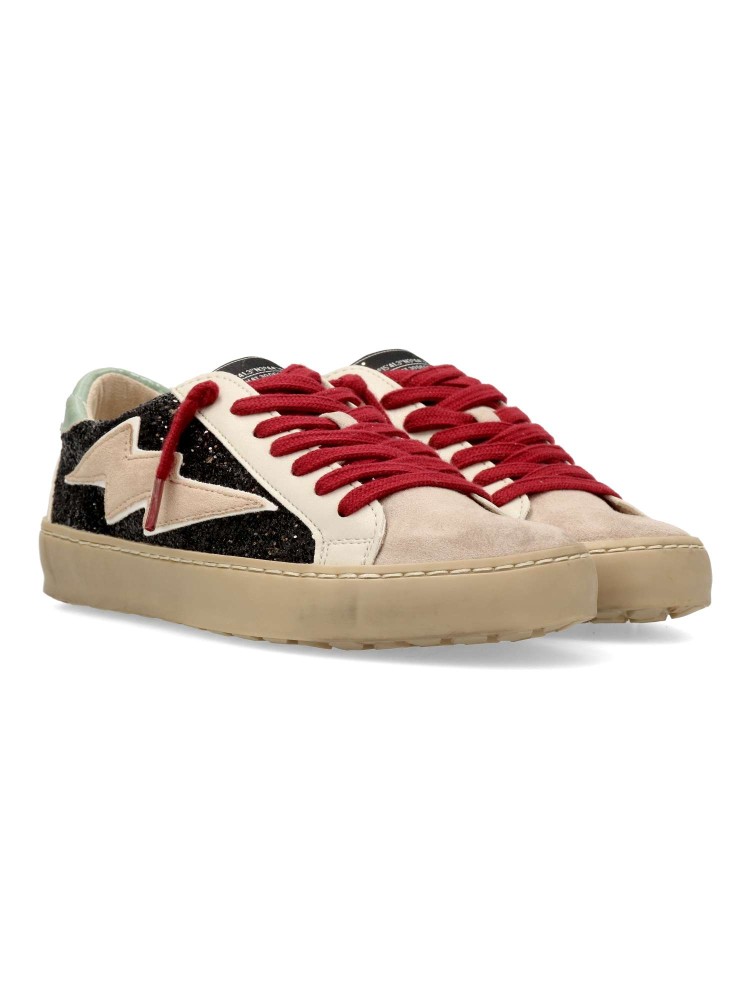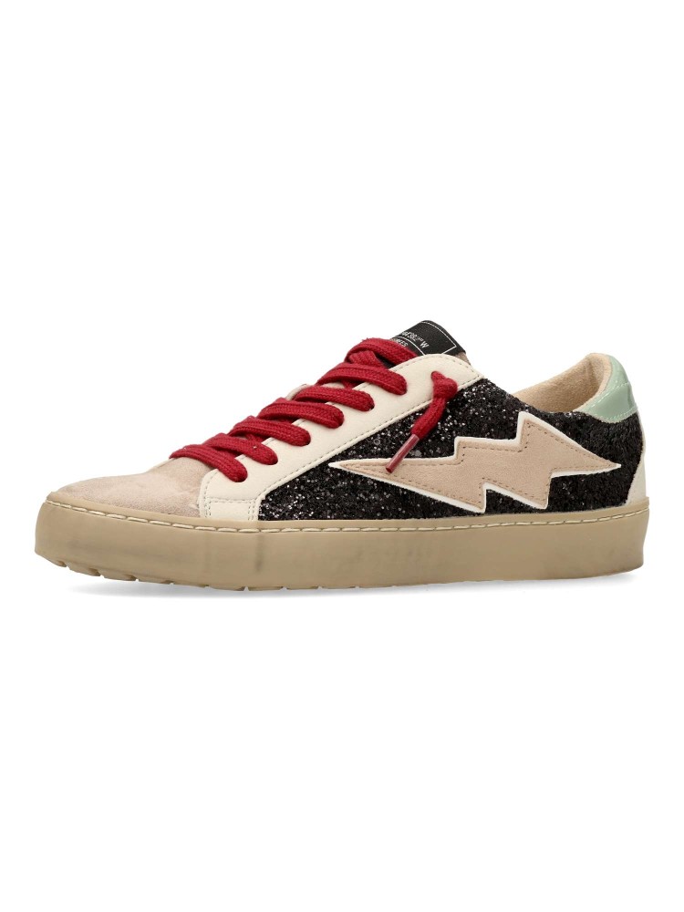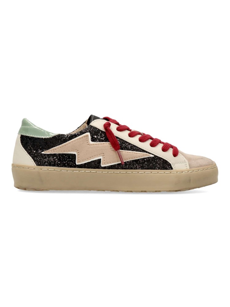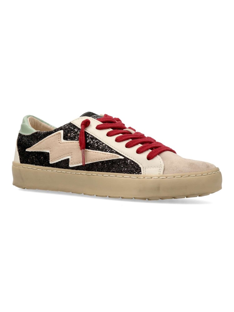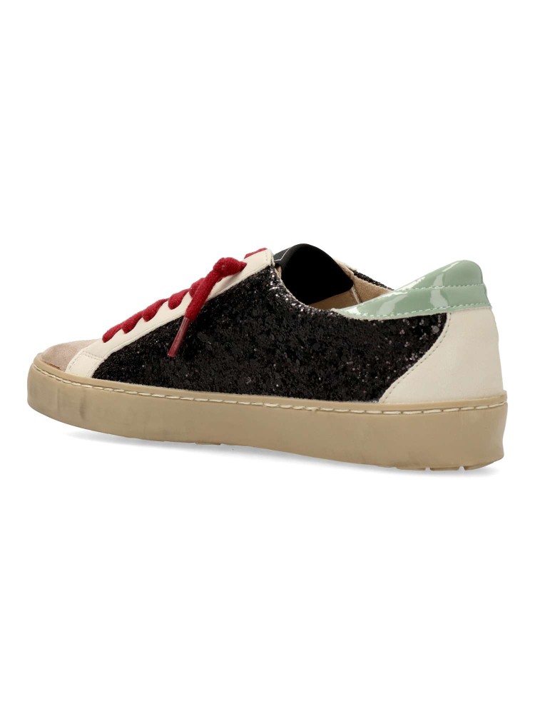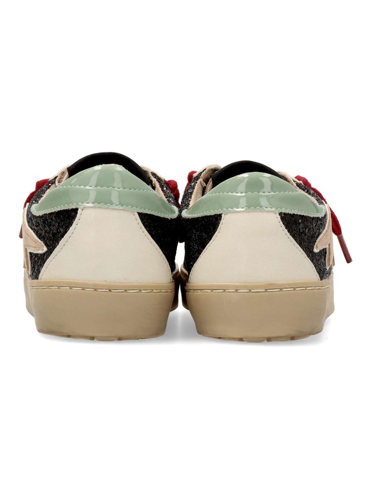 Zapatilla deportiva de mujer, estilo casual. Sneakers cómodo, fabricado en piel sintética, con suela de goma flexible. Plantilla acolchada. Color negro-taupe con detalle glitter. Ideal para combinar con tu estilo urbano informal.