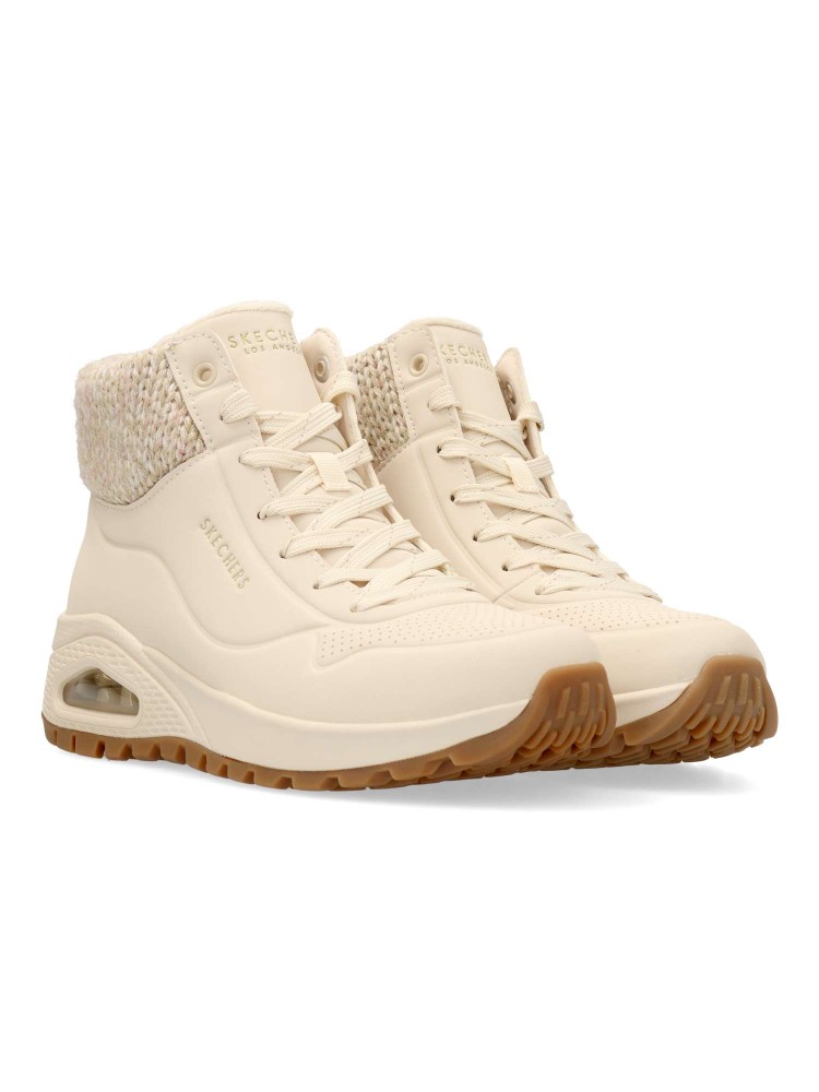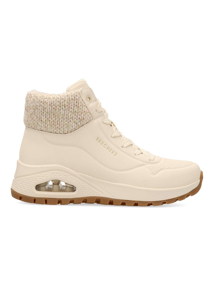 Esta moderna bota sneaker con cordones presenta una parte superior perforada de durabuck sintético., un tipo de cierre lateral con cremallera, una cómoda plantilla Skechers Air-Cooled Memory Foam® y media suela visible Skech-Air® con cámara de aire.