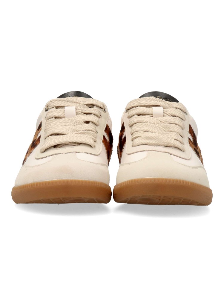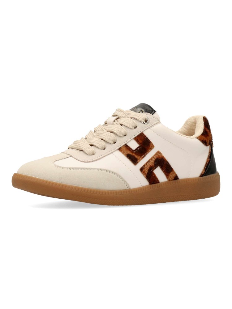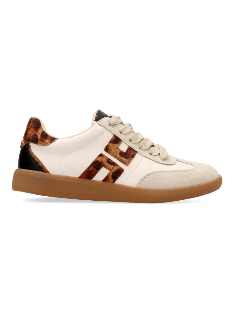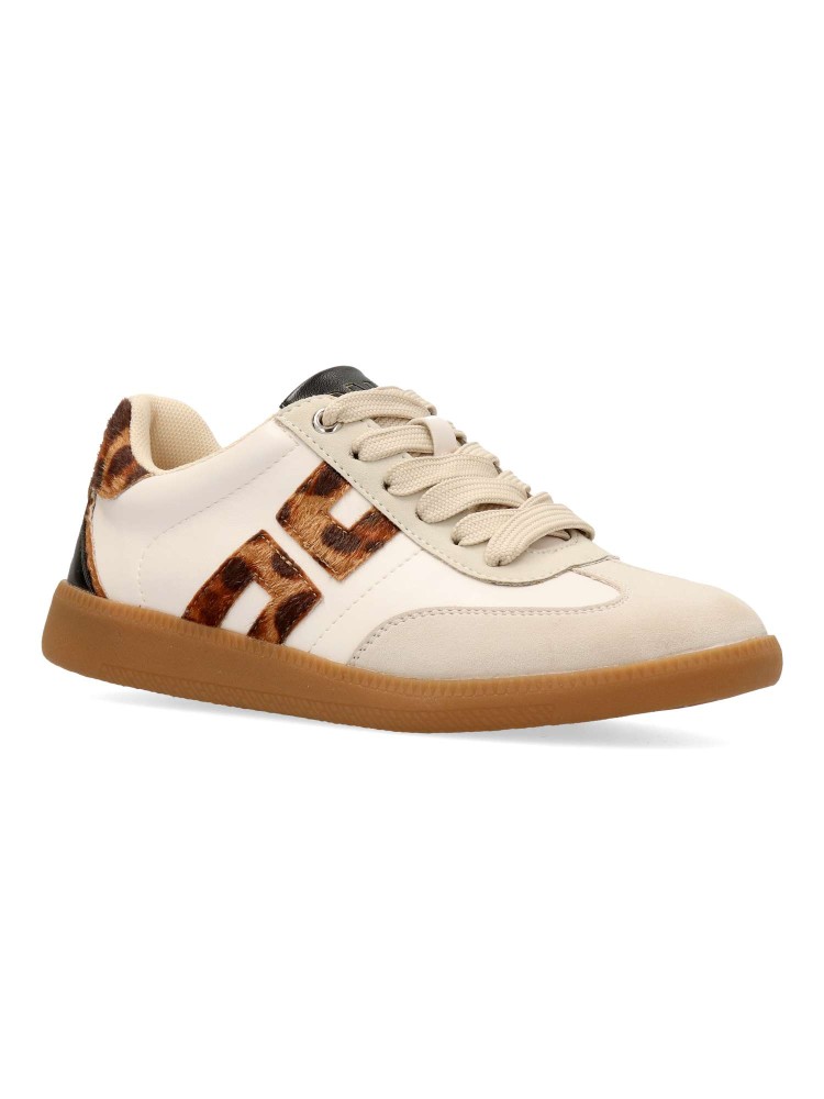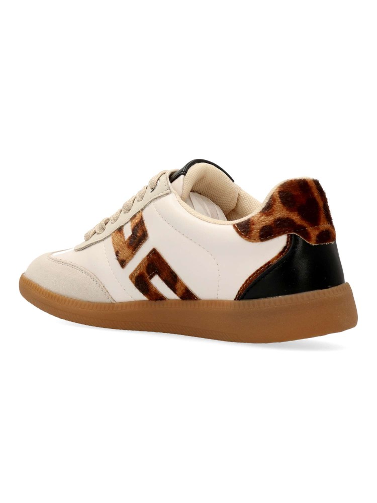 Zapatillas deportivas estilo casual. Sneakers fabricado en piel sintética suave con detalle estampado leopardo. Suela de goma color caramelo. Plantilla acolchada y extraíble tecnología Softouch. Tenis con diseño sport, ideal con tus looks informales.