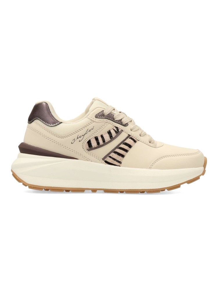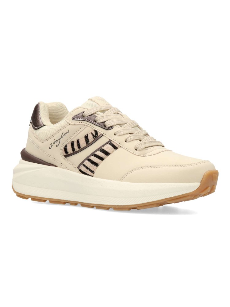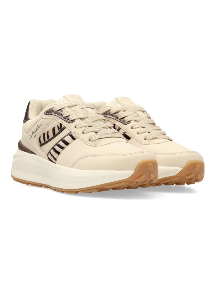 Zapatillas casual de mujer en color beige ideales para uso diario. Incorporan plantilla Urban Comfort que ofrece amortiguación duradera y absorción de impactos. Detalles cobre con animal print aportan carácter urbano y femenino.