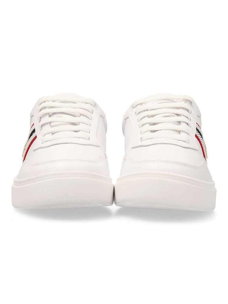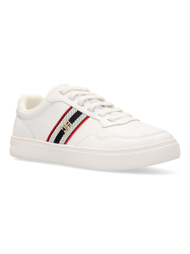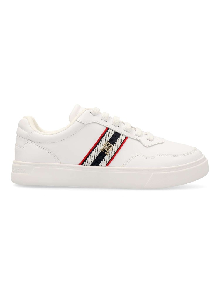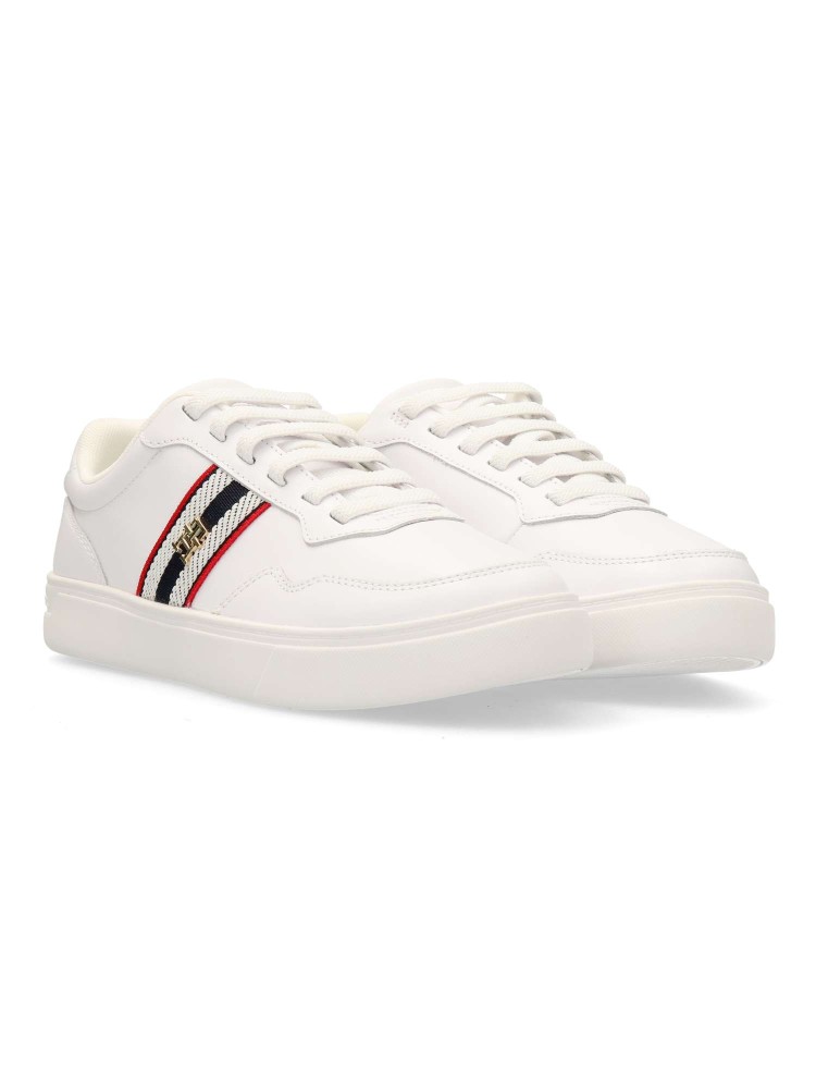 Deportivas fabricadas en piel con suela de goma. Cierre de cordones. Plantilla extraíble de goma termoplástica reciclada. Detalle textil a rayas en el lateral y detalles distintivos de Tommy Hilfiger. Diseño versátil y elegante con todos tus outfits.