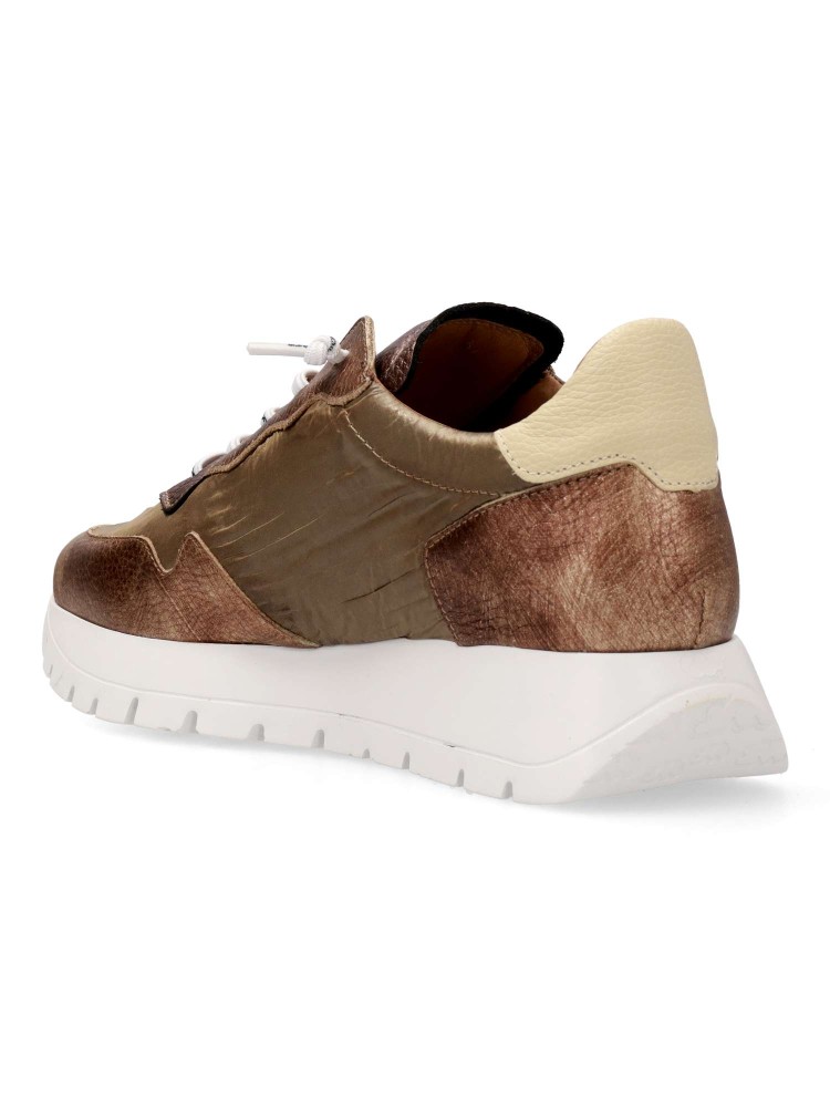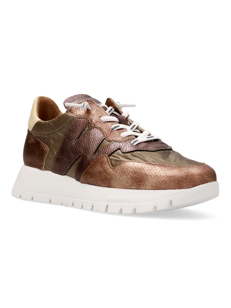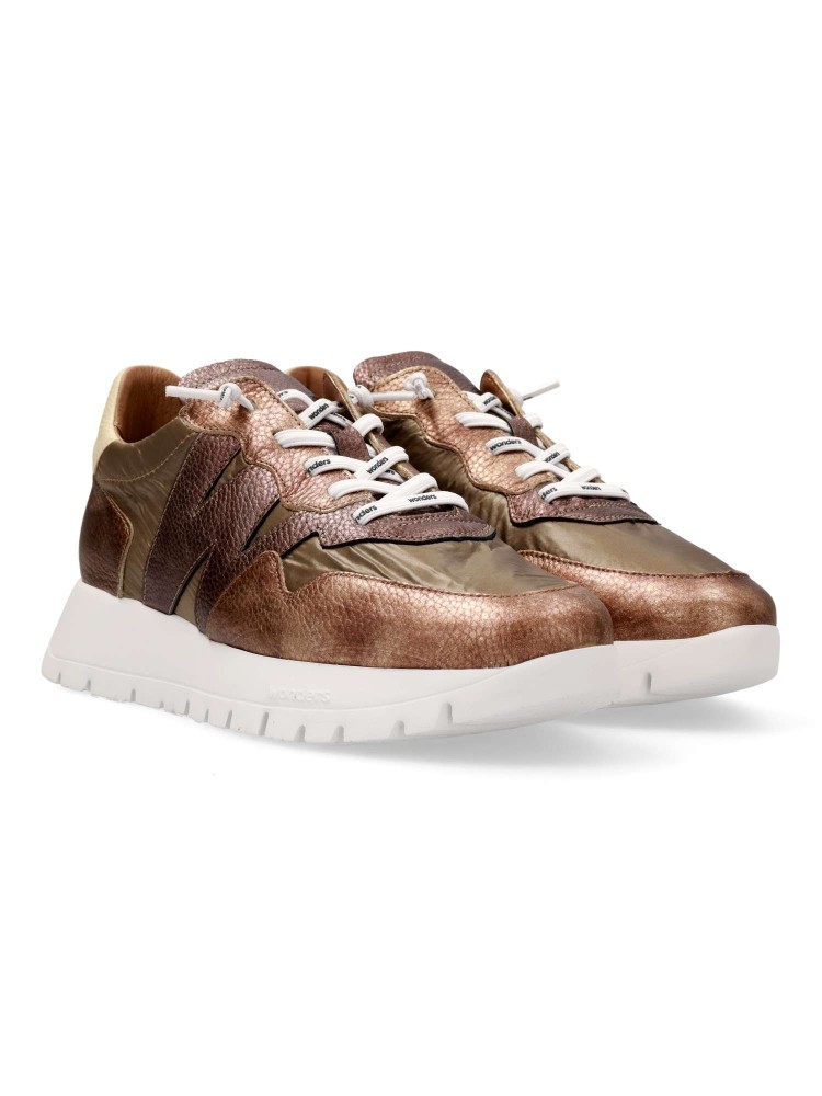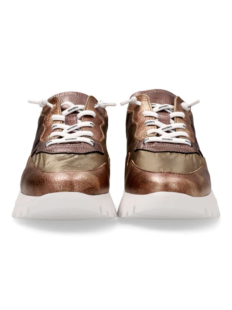 Deportiva de mujer, estilo casual. Cierre de cordón elástico. Sneakers fabricado en piel vacuna y textil. Color oro. Suela con tecnología WondersFly ™, garantía de ligereza y confort. Plantilla MemoryGel. Prepárate para sentir la sensación #YesWeFly.