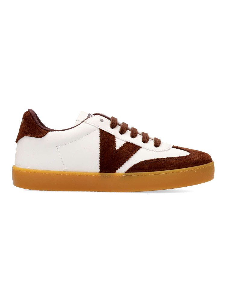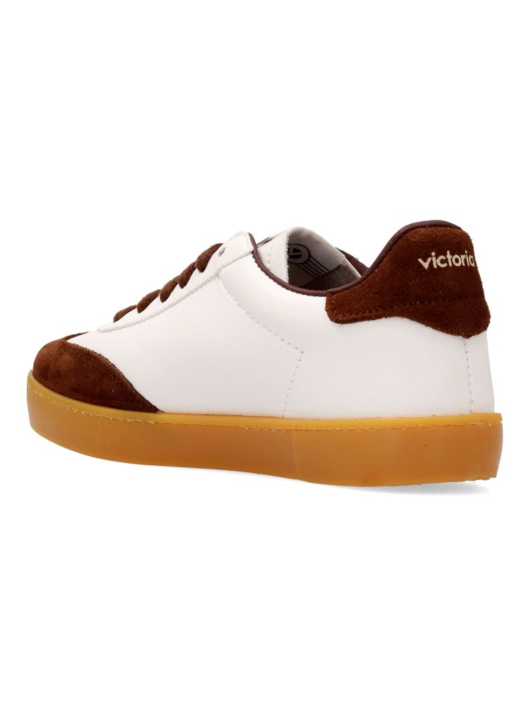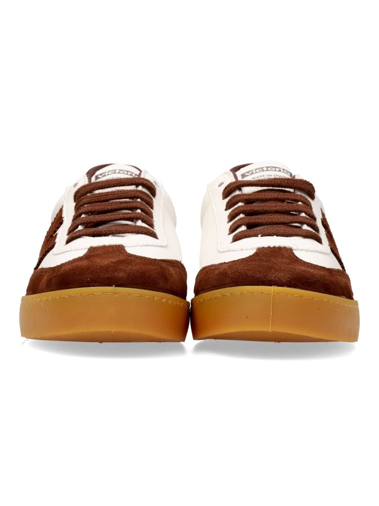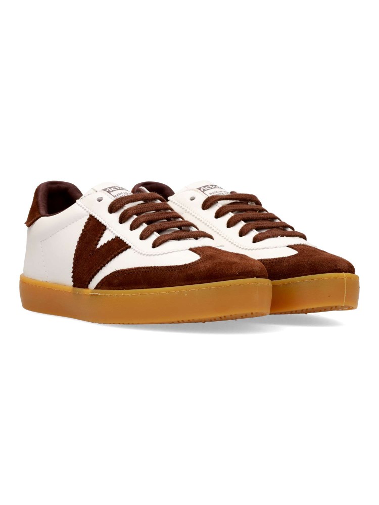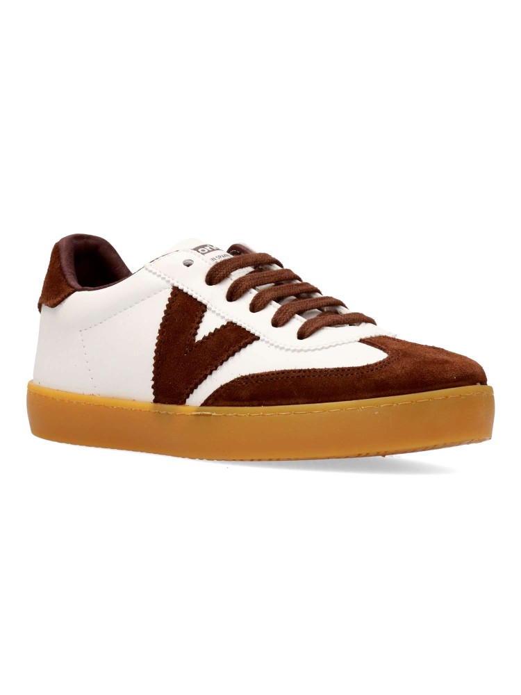 Zapatilla deportiva de mujer, estilo casual. Cierre de cordones. Sneakers cómodos, fabricados en piel serraje y sintético, con suela de goma. Plantilla acolchada. Color blanco-chocolate. Diseño sport, ideal con tu outfit informal o urbano. Hecho en España