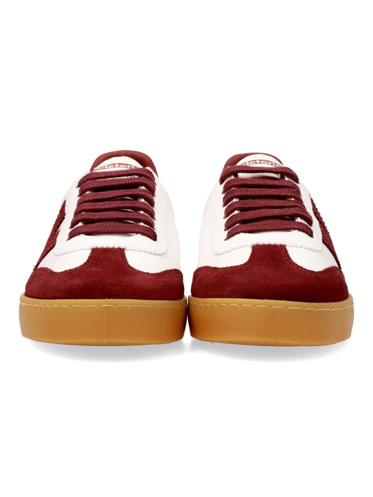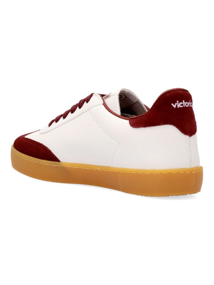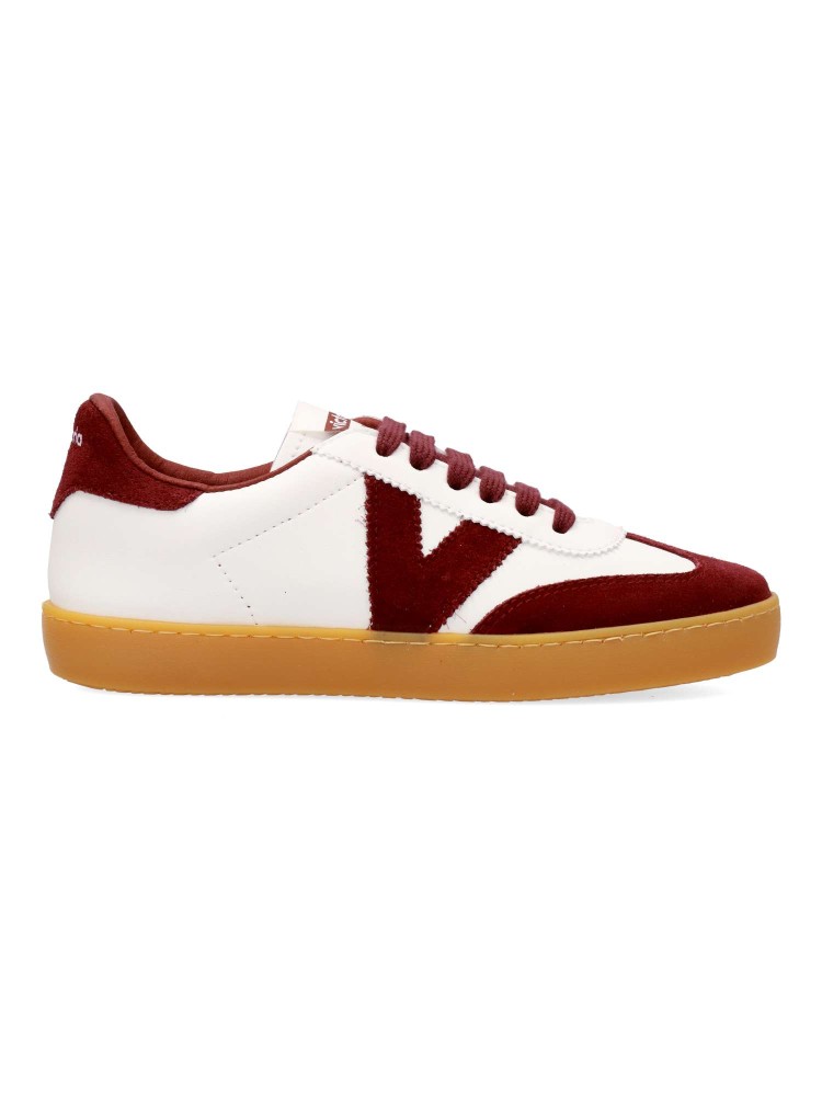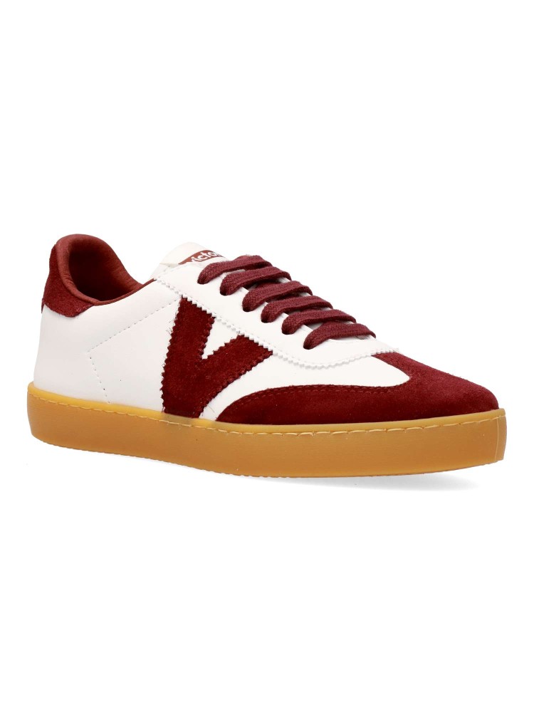 Zapatilla deportiva de mujer, estilo casual. Cierre de cordones. Sneakers cómodos, fabricados en piel serraje y sintético, con suela de goma. Plantilla acolchada. Color blanco-burdeos. Diseño sport, ideal con tu outfit informal o urbano. Hecho en España.