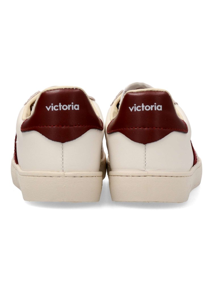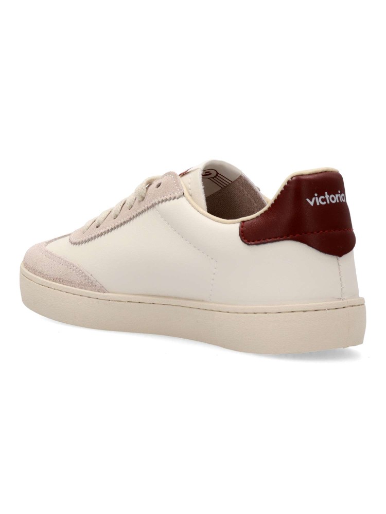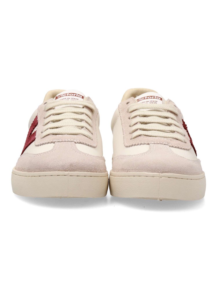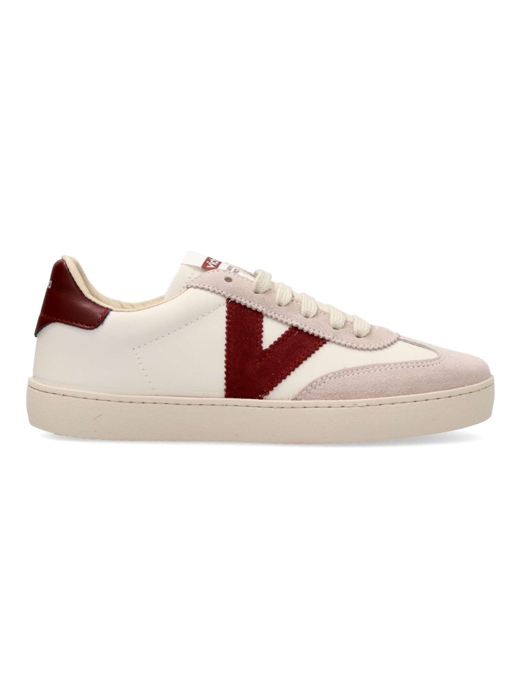 Zapatilla deportiva de mujer, estilo casual. Cierre de cordones. Sneakers cómodos, fabricados en piel serraje y sintético, con suela de goma. Plantilla acolchada. Color beige-burdeos. Diseño sport, ideal con tu outfit informal o urbano. Hecho en España.