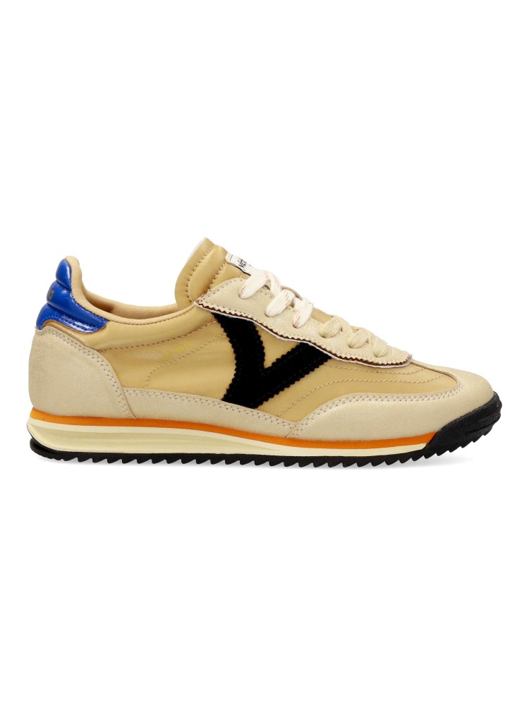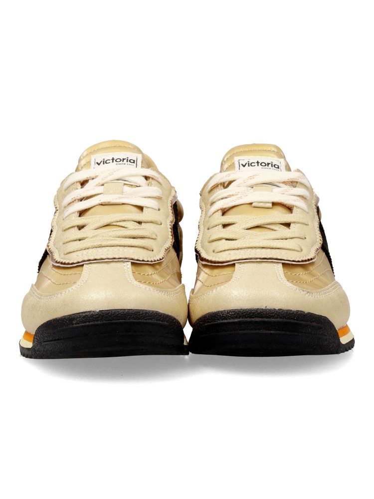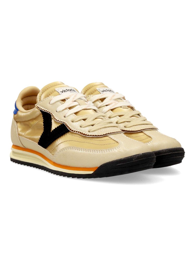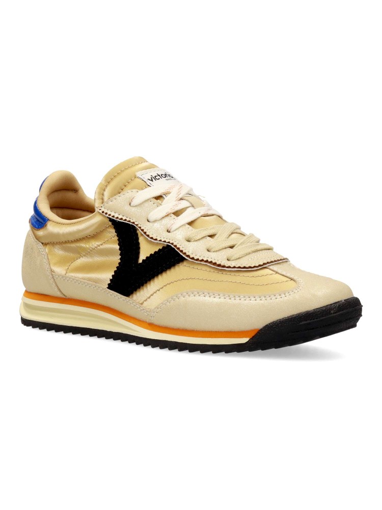 Zapatilla deportiva estilo casual. Cierre de cordones. Sneakers fabricadas en piel sintética y textil. Mediasuela de EVA y suela de goma. Plantilla acolchada y extraíble. Color oro. Diseño sport vintage, ideal para combinar con tu ropa urbana.