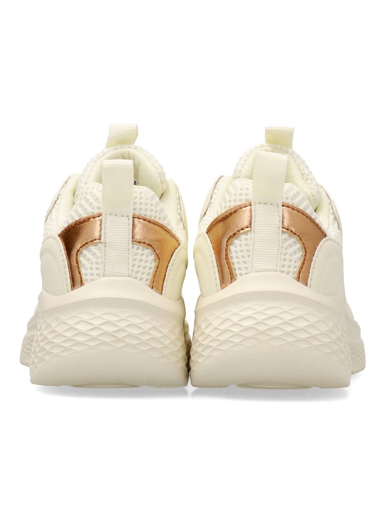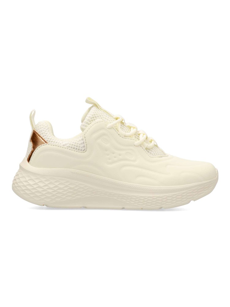Zapatilla deportiva de mujer, estilo casual. Cierre de cordones. Sneakers fabricado en piel sintética y textil, con suela de goma ligera. Plantilla acolchada y extraíble. Color beige. Diseño sport, que ofrece comodidad en tus paseos.