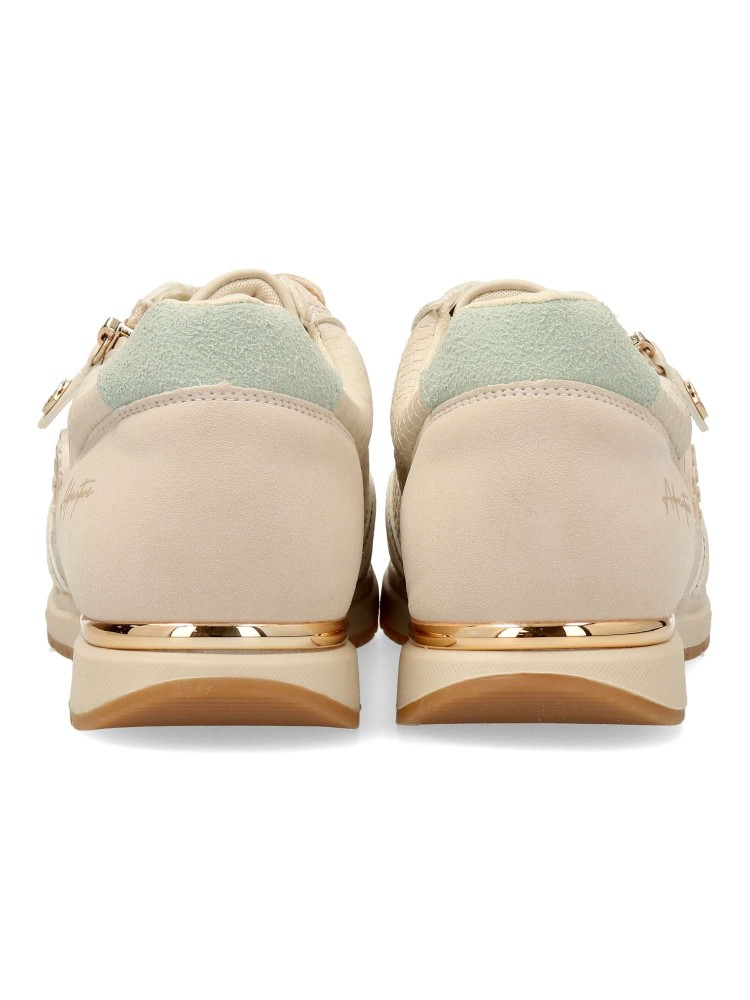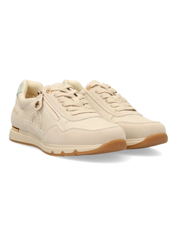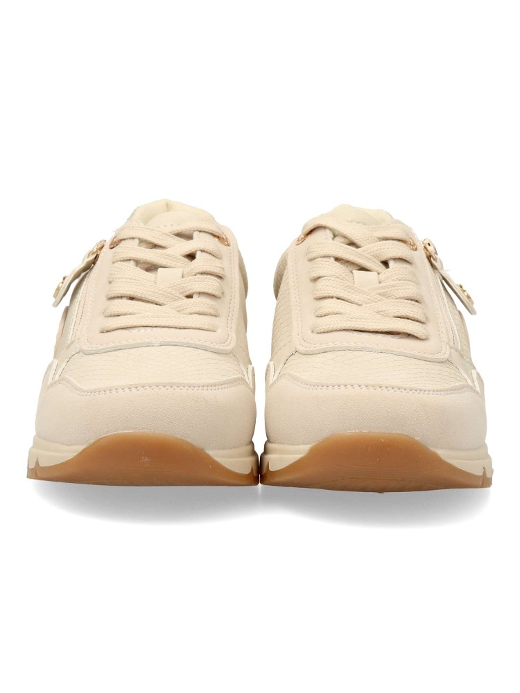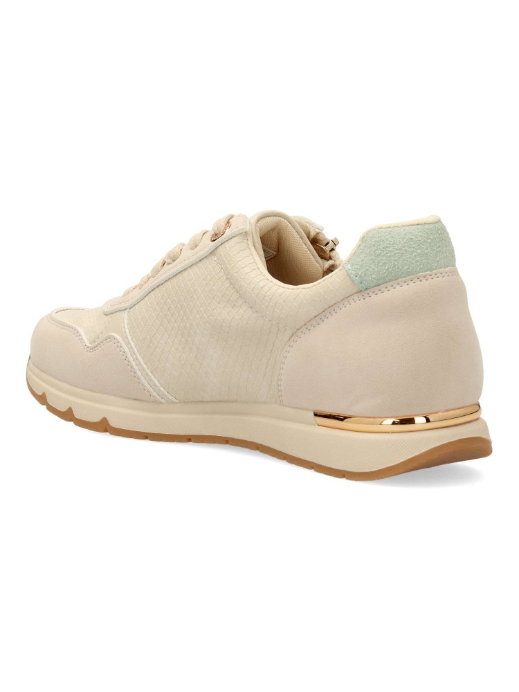 Zapatilla deportiva de mujer, estilo causal. Cierre de cordones. Fabricado en piel vegana grabada. Suela de goma antideslizante. Plantilla acolchada y extraíble. Una zapatilla versátil para combinar con todos tus looks. Certificado vegano.