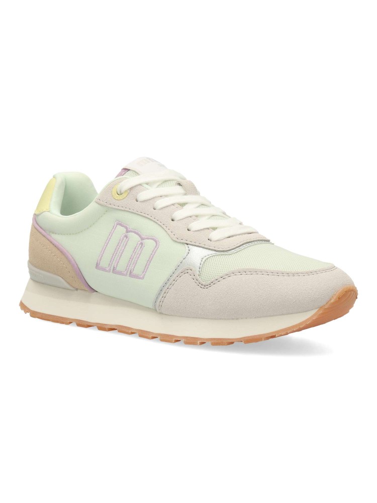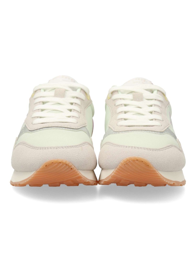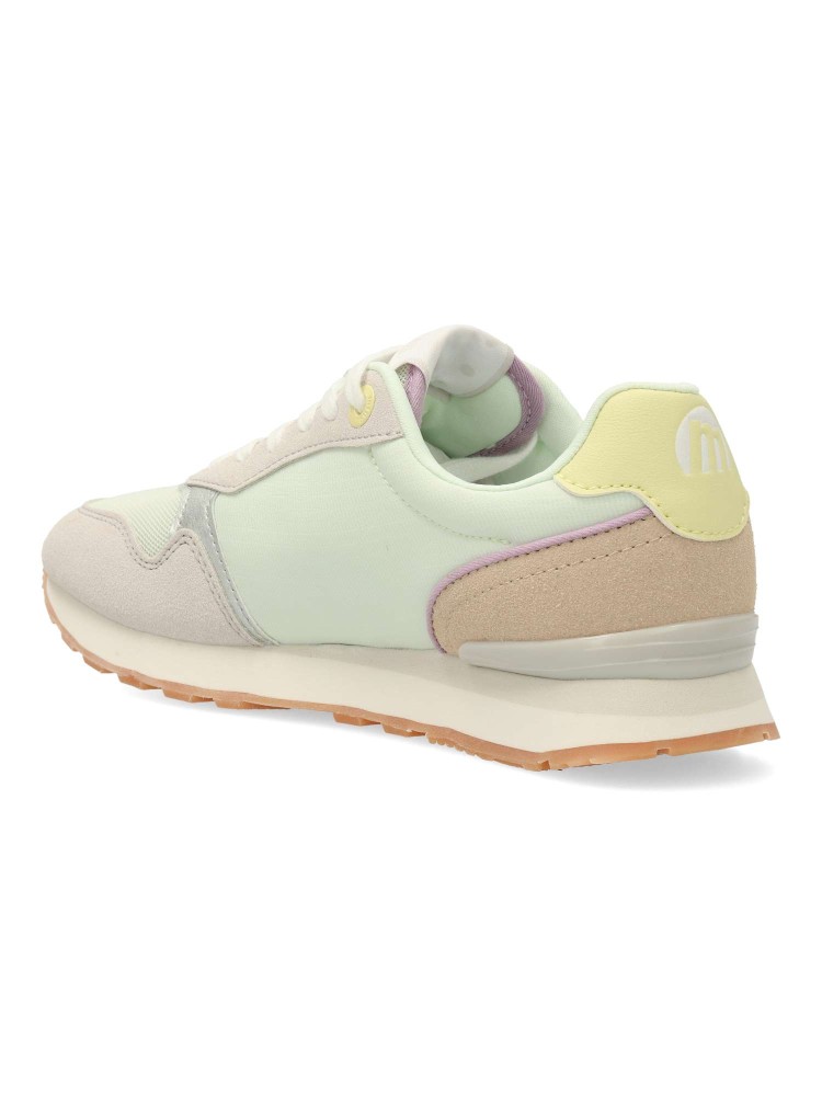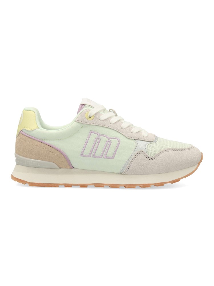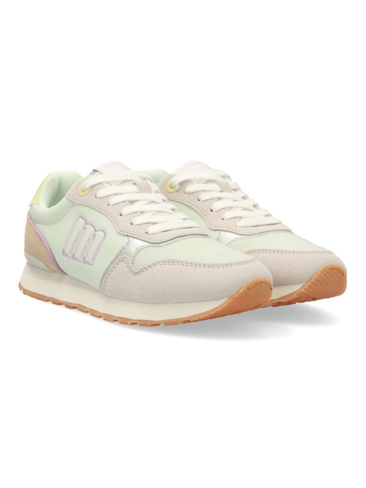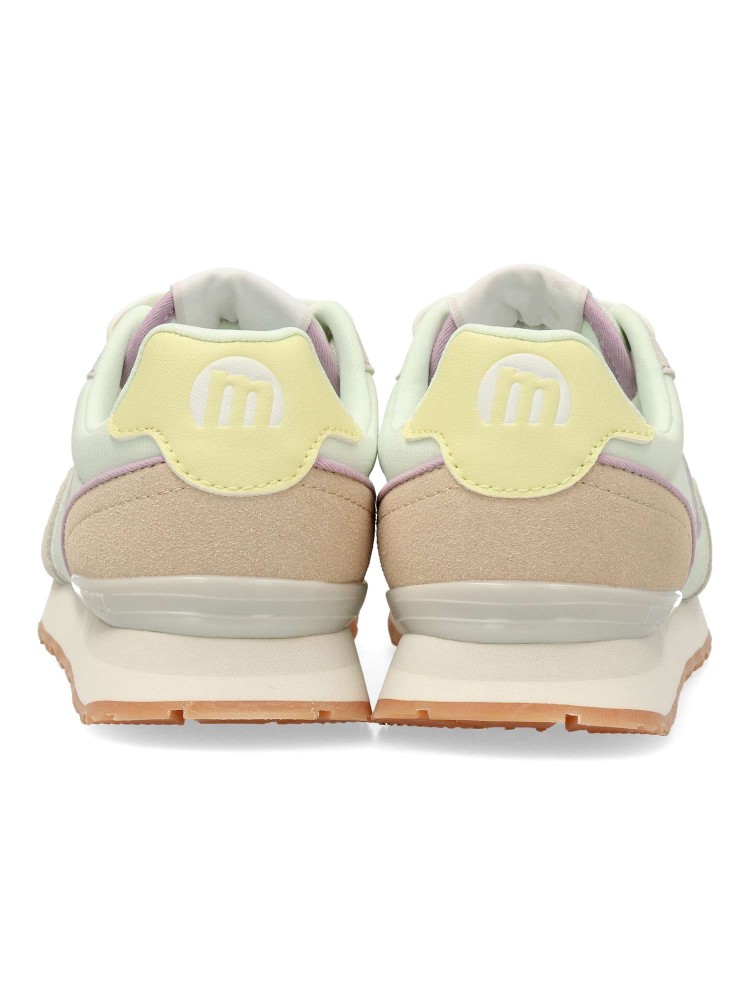 Zapatilla casual para mujer, estilo retro running. Sneakers fabricados en piel sintética y textil, con suela dentada color caramelo. Plantilla con tecnología Starfit. Perfectas para quienes buscan un look urbano con inspiración deportiva.