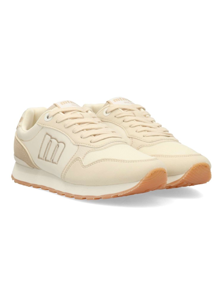 Zapatilla casual para mujer, estilo retro running. Sneakers fabricados en piel sintética y textil, con suela dentada color caramelo. Plantilla con tecnología Starfit. Perfectas para quienes buscan un look urbano con inspiración deportiva.