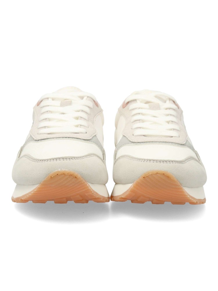 Zapatilla casual para mujer, estilo retro running. Sneakers fabricados en piel sintética y textil, con suela dentada color caramelo. Plantilla con tecnología Starfit. Perfectas para quienes buscan un look urbano con inspiración deportiva.