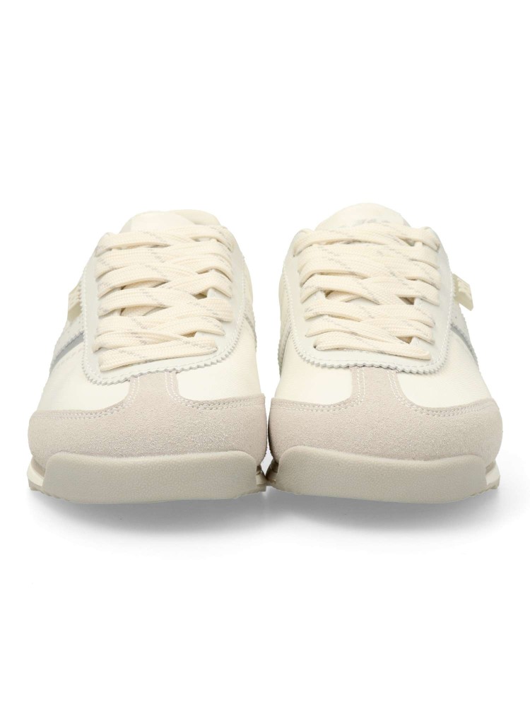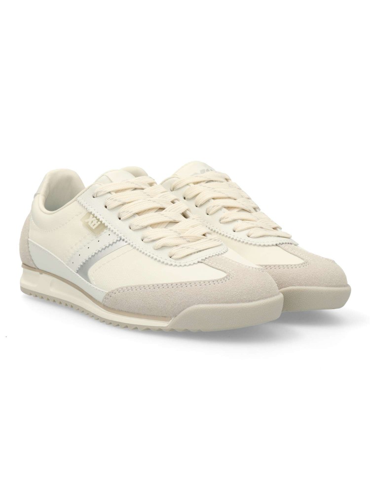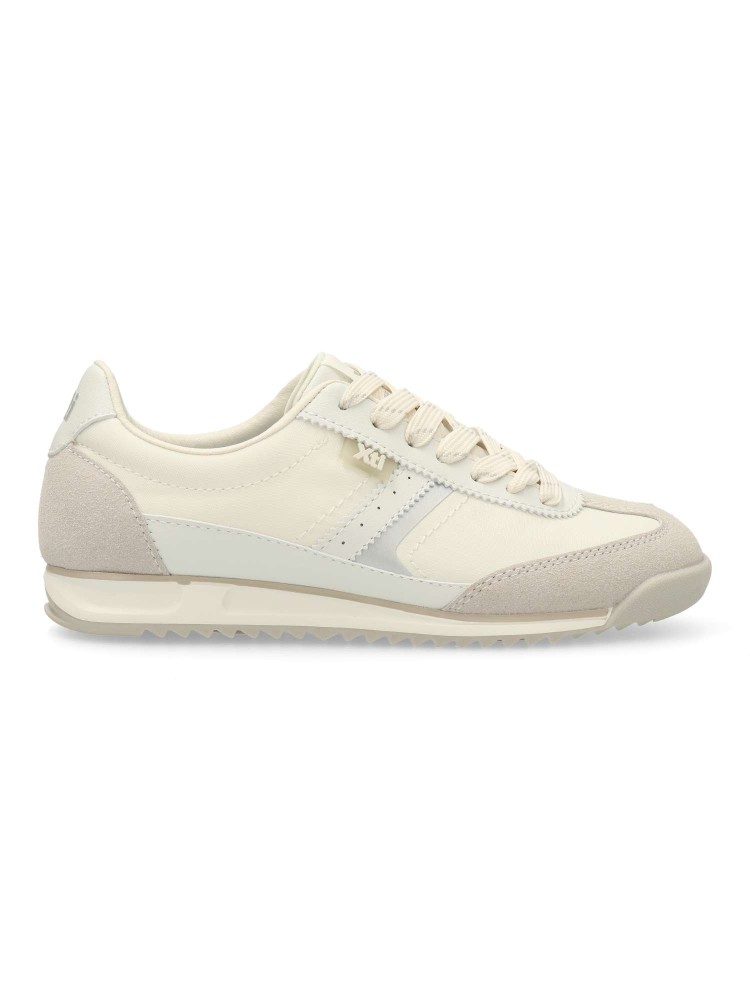 Zapatilla deportiva de mujer, estilo casual. Cierre de cordones. Sneakers fabricado en piel vegana y textil, con suela de goma. Plantilla acolchada y extraíble. Color blanco. Certificado vegano. Clásica bamba deportiva que te querrás poner con todo.