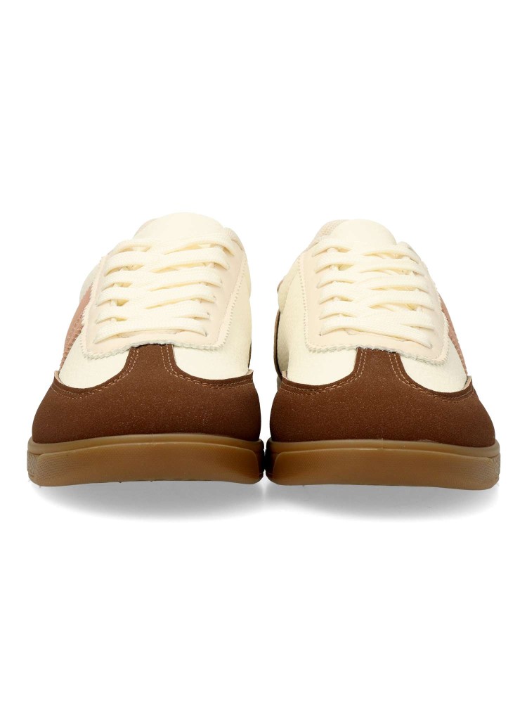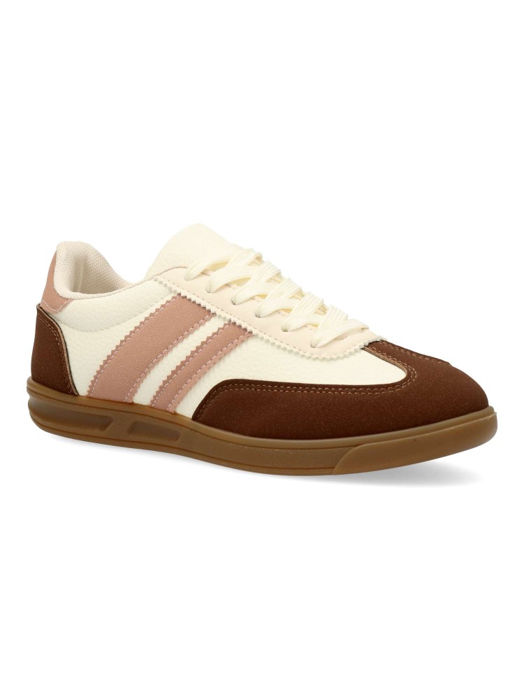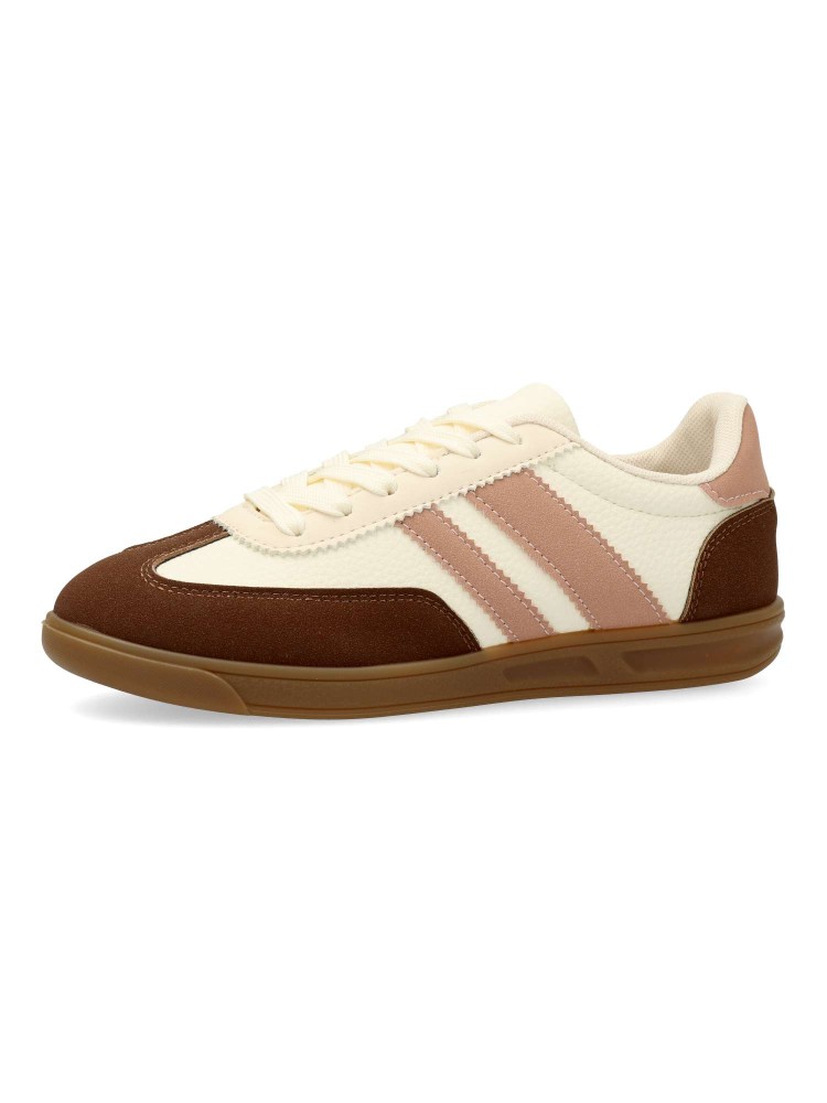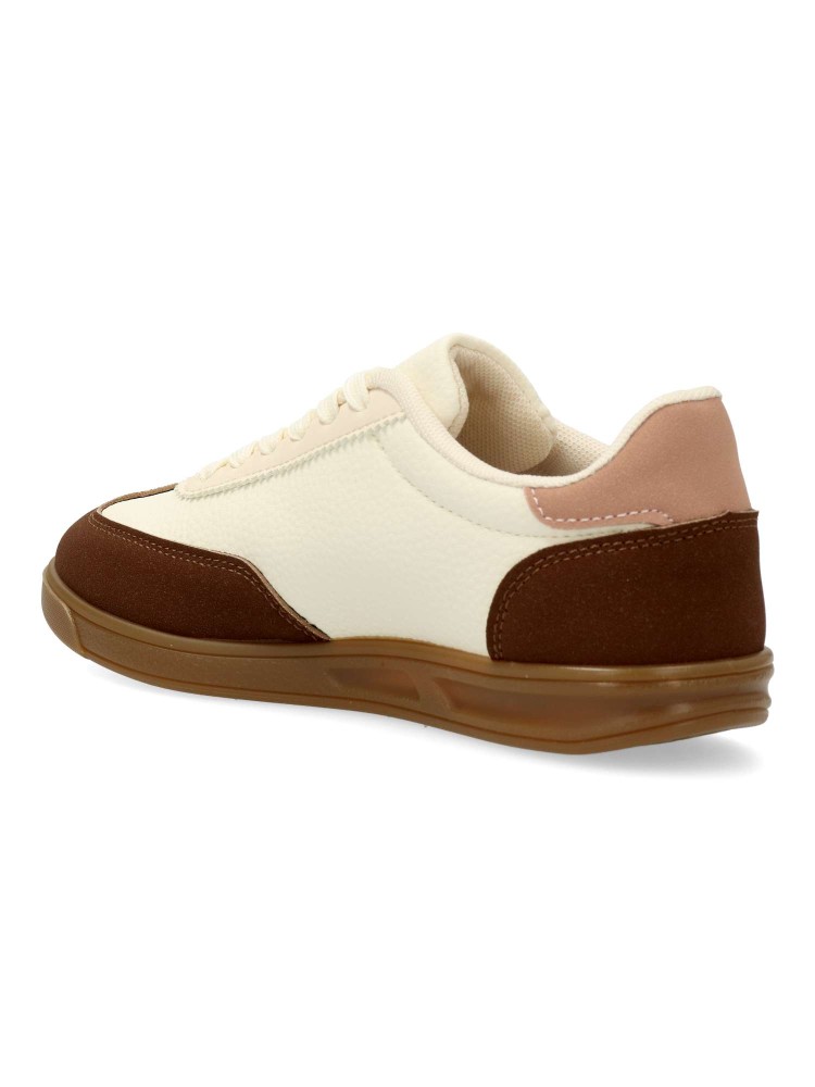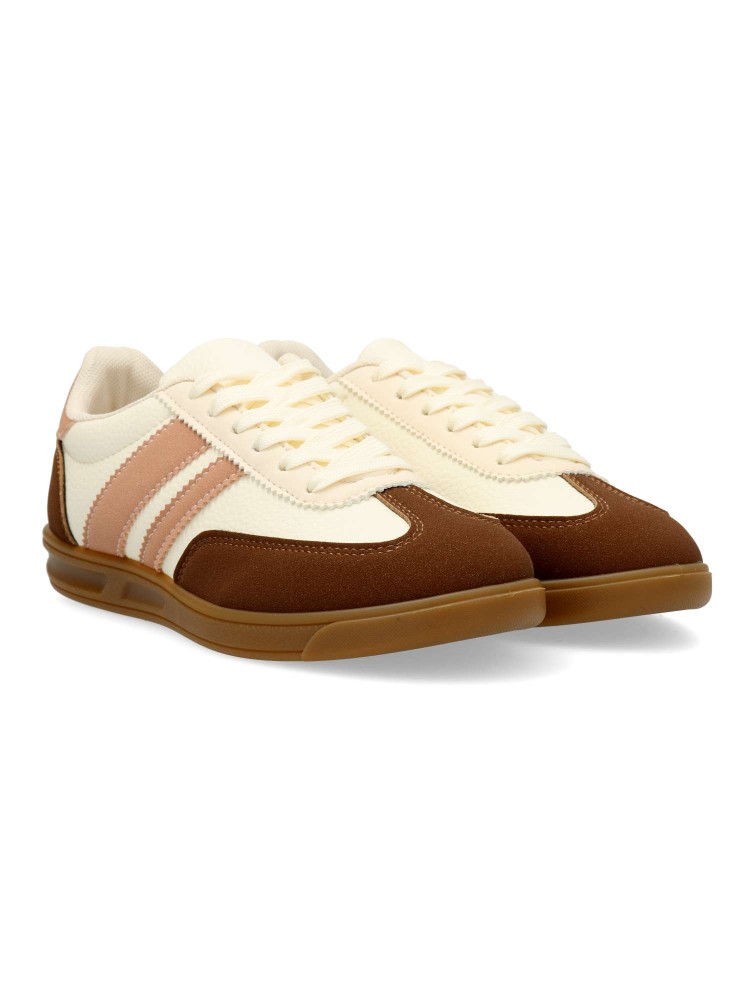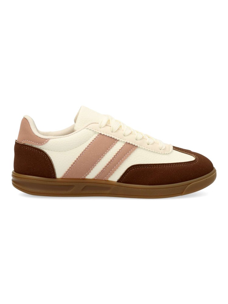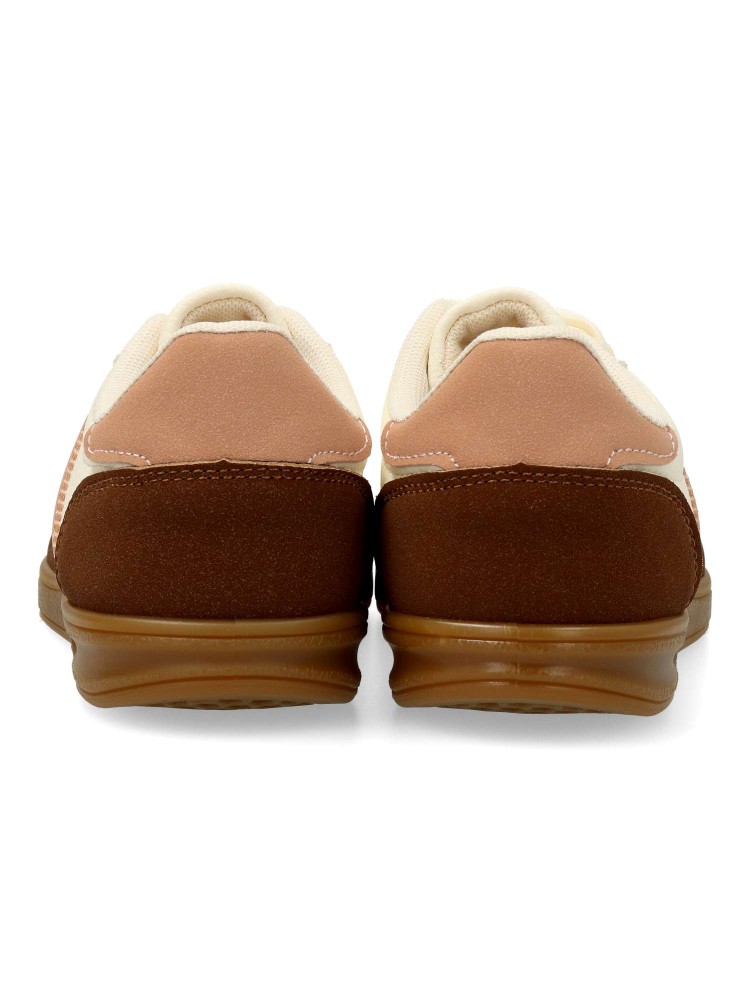 Zapatilla deportiva estilo casual. Cierre de cordones. Sneakers cómodo, fabricado en piel sintética, con suela de goma. Plantilla acolchada y extraible. Color cafe-rosa. Zapatilla con diseño versátil, ideal para combinar con tus looks de temporada.