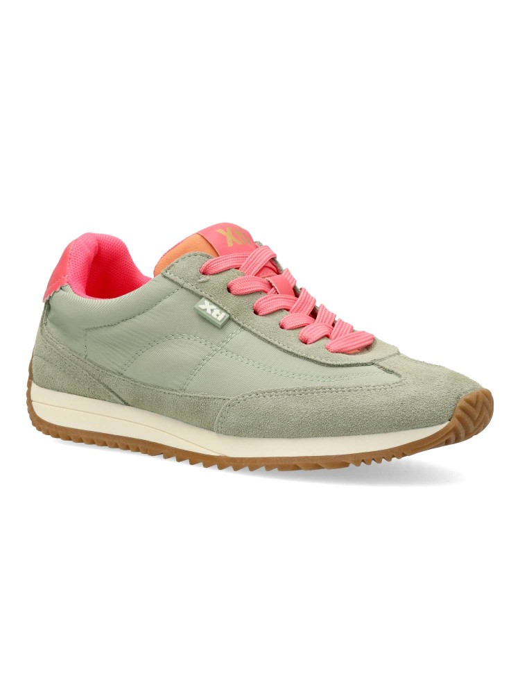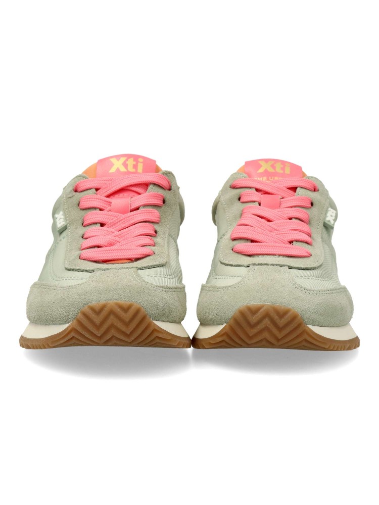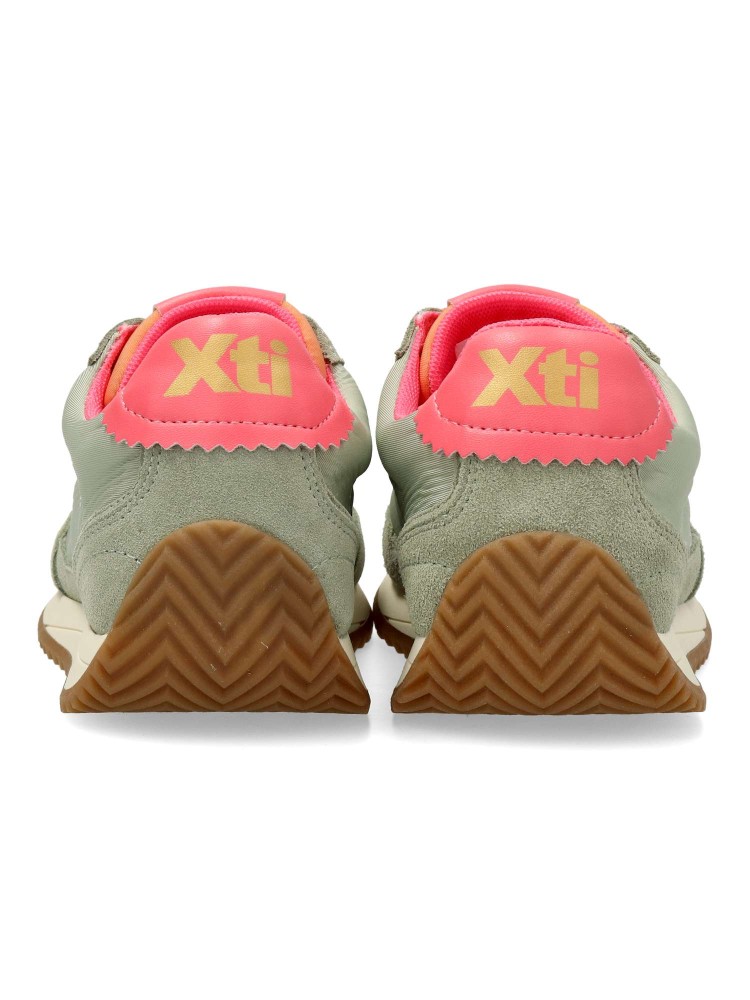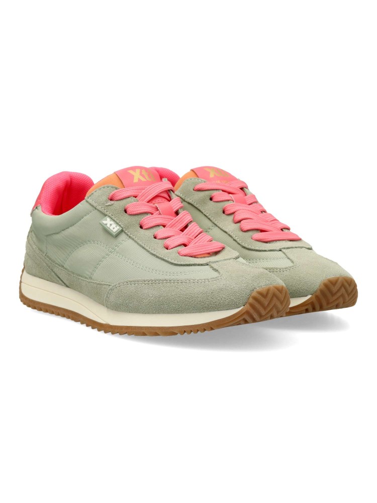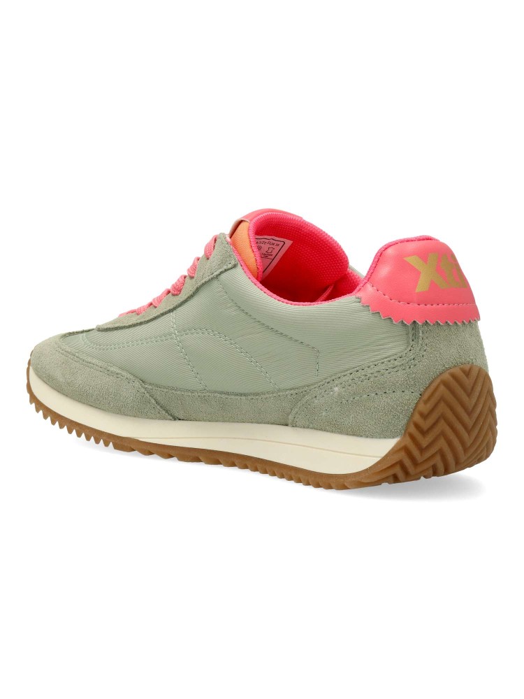 Zapatilla deportiva de mujer, estilo casual. Cierre de cordones. Sneakers fabricados en piel y textil. Suela de goma dentada. Plantilla acolchada y extraíble. Color kaki-rosa. Diseño ergonómico con estilo y cómodidad perfectas para ti.