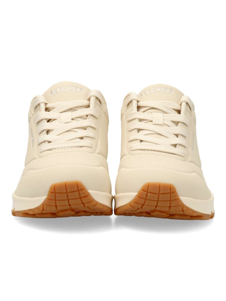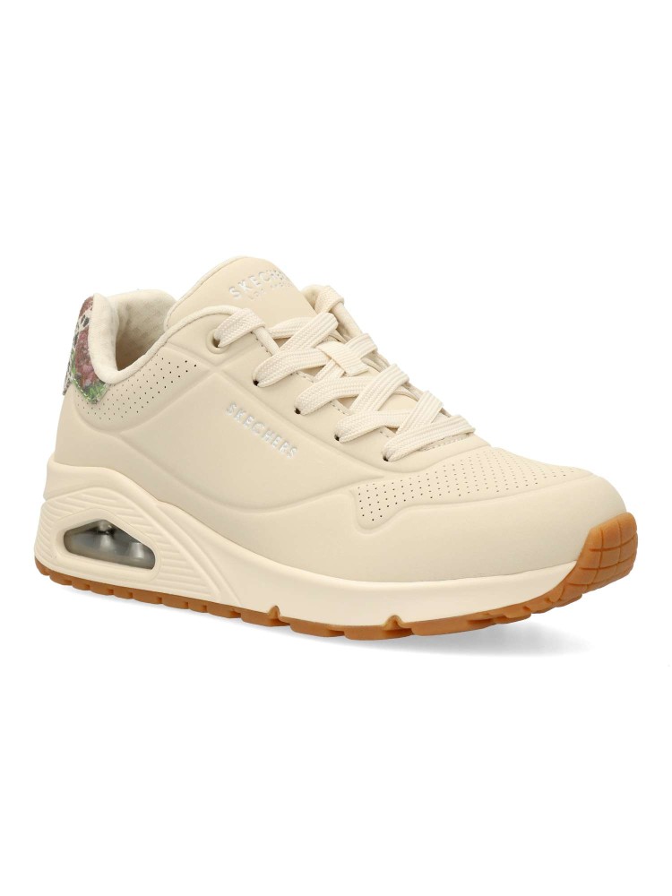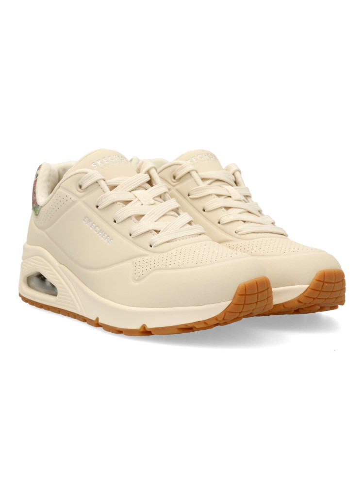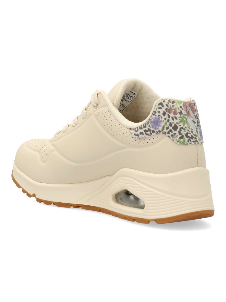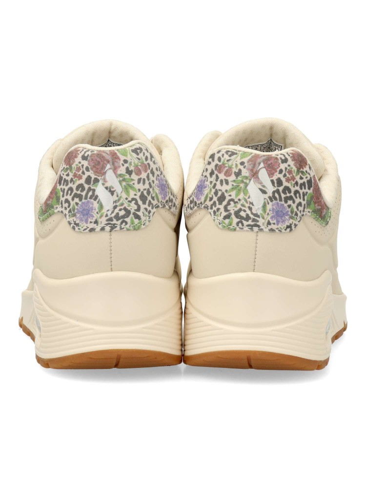 Esta moderna zapatilla con cordones presenta una parte superior de material sintético, talonera con estampado de leopardo, una plantilla Skechers Air-Cooled Memory Foam™ y una media suela visible Skech-Air® con cámara de aire.