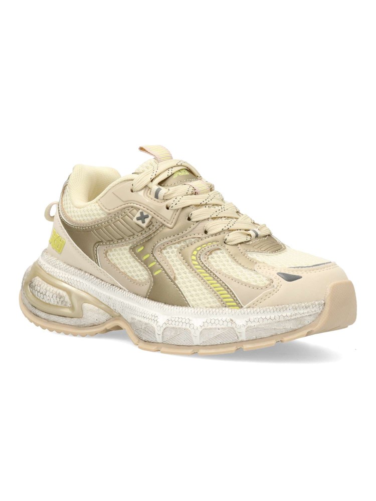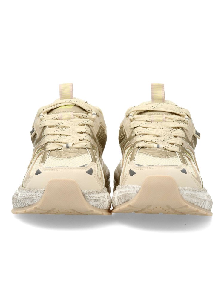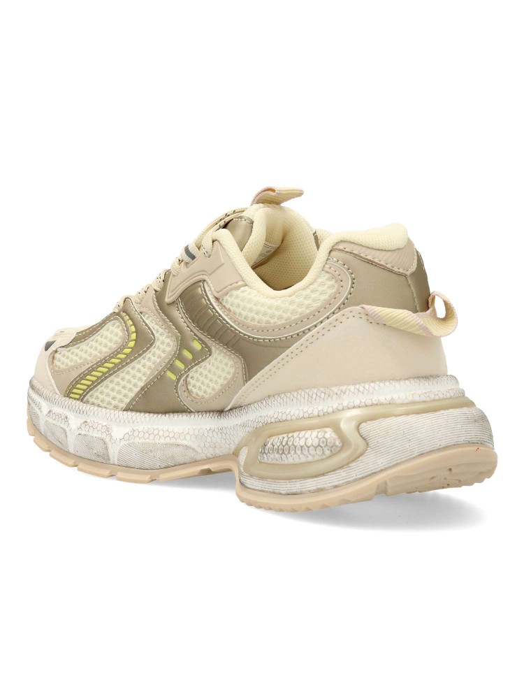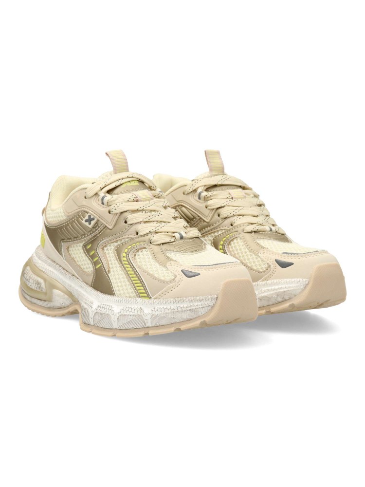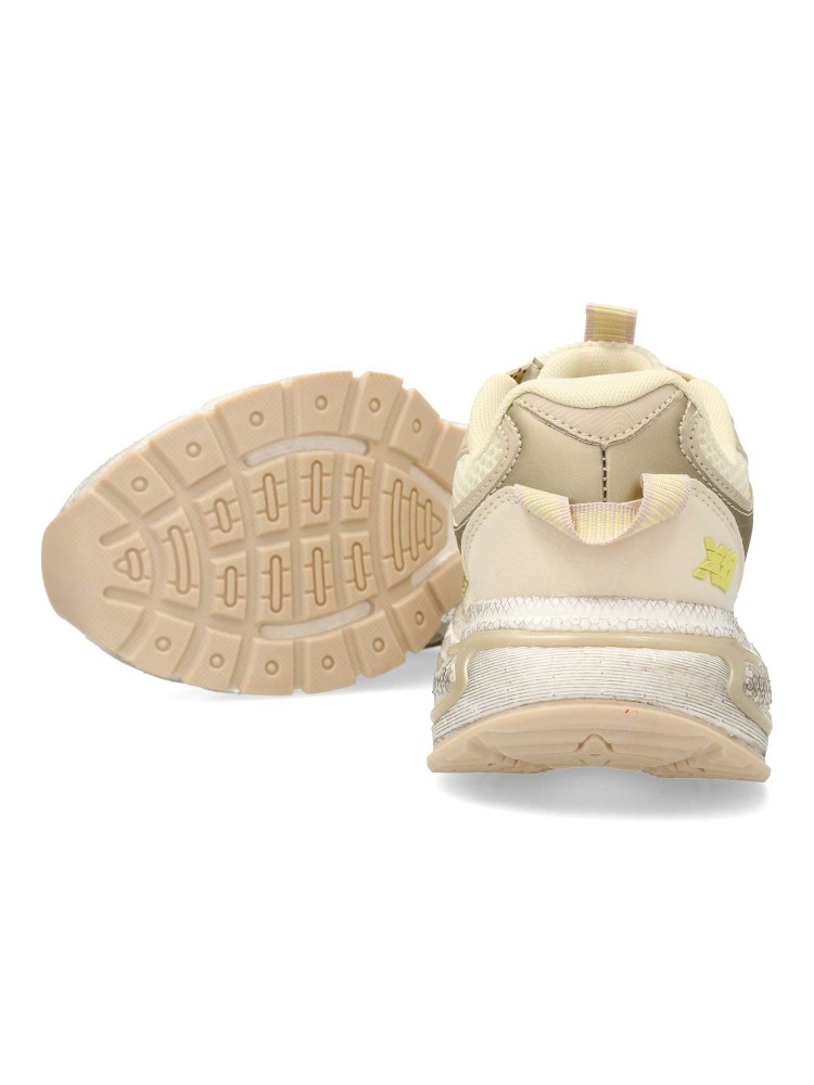 Zapatilla de mujer, fabricado en un material que imita la piel y textil rejilla. Cierre de cordones. Con tirador trasero para facilitar el calce. Ideal para un look sport. Suela gruesa deportiva antideslizante. Con plantilla extraíble. Certificado vegano.