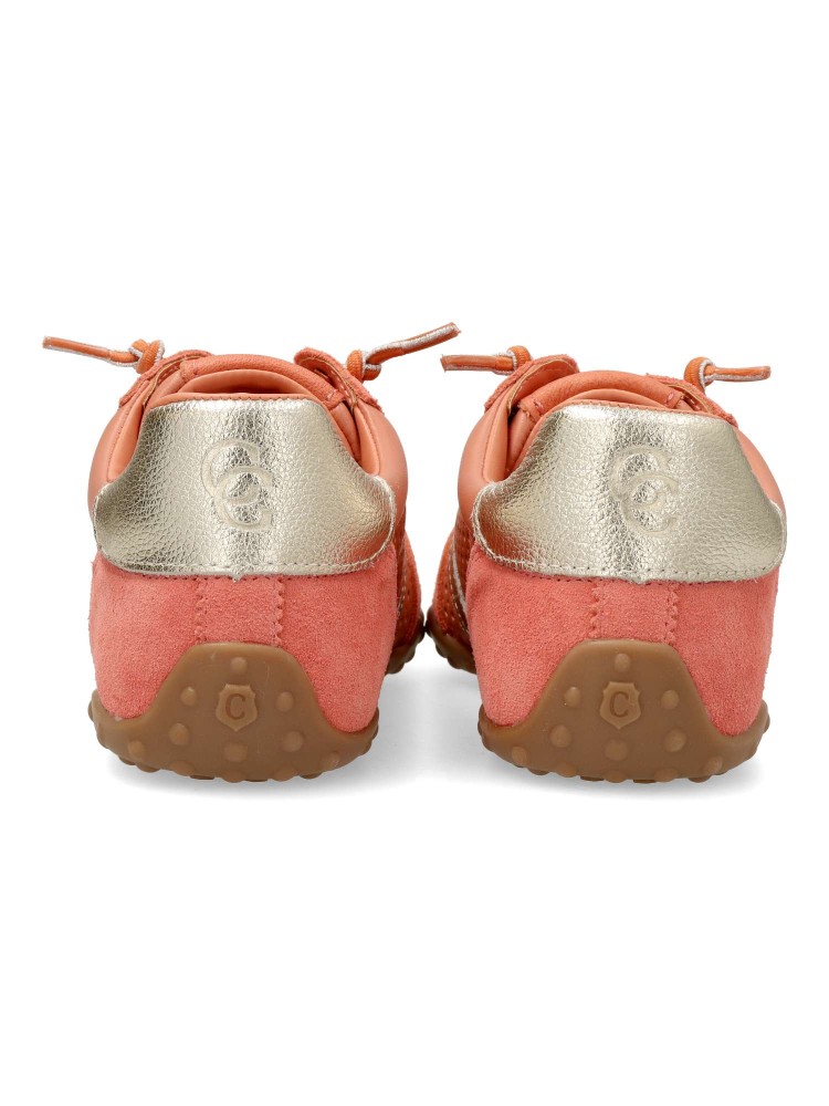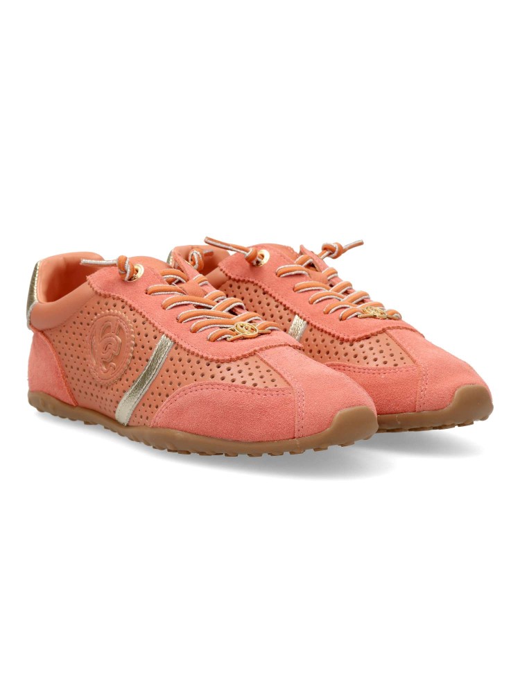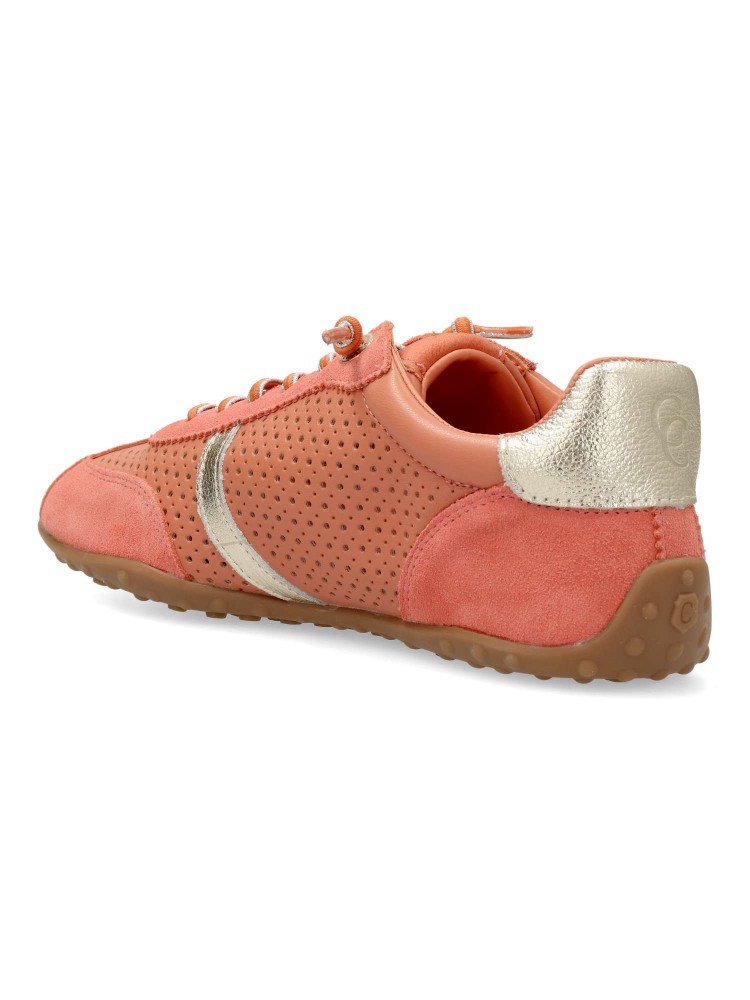 Deportiva de mujer, fabricada en piel de alta calidad troquelada. Suela de goma antideslizante. Plantilla acolchada y extraíble. Cierre de cordón elástico. Color coral. Diseño en tendencia, indispesable con tus outfits casuales de temporada.