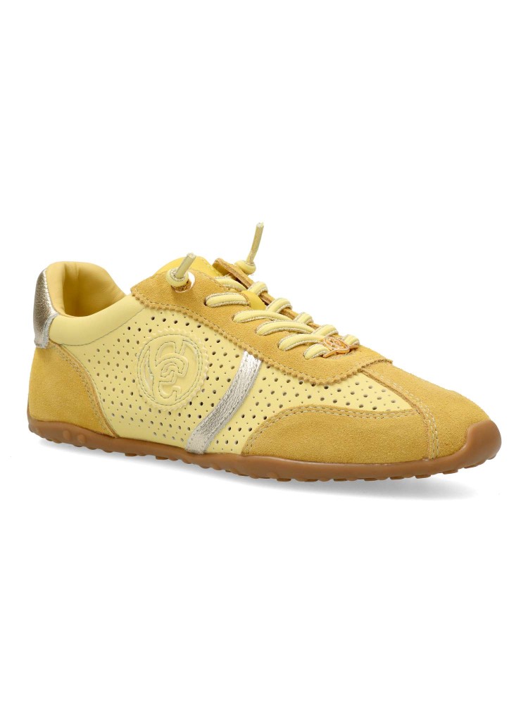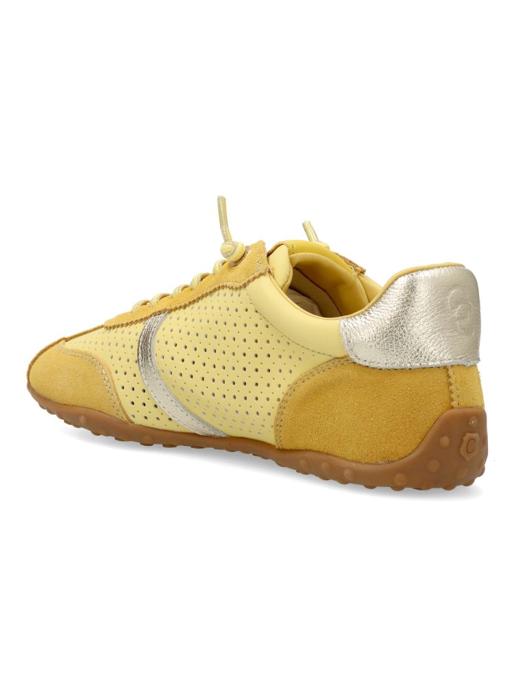 Deportiva de mujer, fabricada en piel de alta calidad troquelada. Suela de goma antideslizante. Plantilla acolchada y extraíble. Cierre de cordón elástico. Color amarillo. Diseño en tendencia, indispesable con tus outfits casuales de temporada.