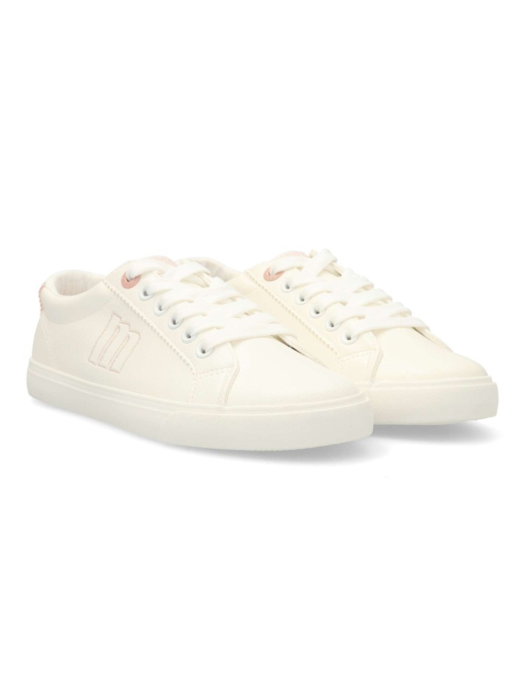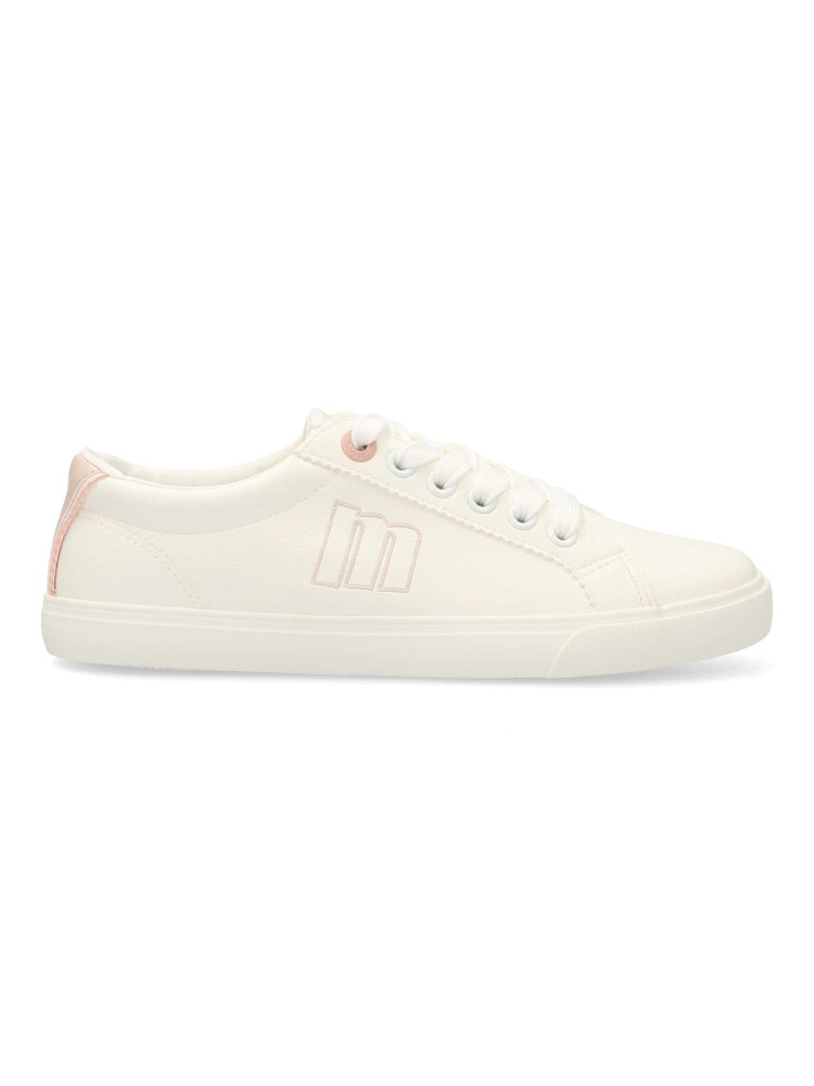 Zapatilla deportiva Aria Mustang de chica, estilo casual. Cierre de cordones elásticos. Sneakers cómodo, fabricado en piel sintética, con suela de goma flexible. Plantilla acolchada. Inspirada en la clásica bamba blanca, que no puede faltar en tu armario.