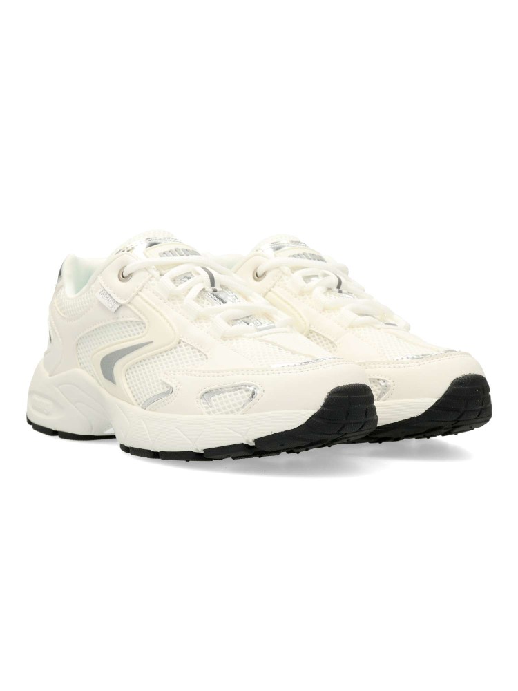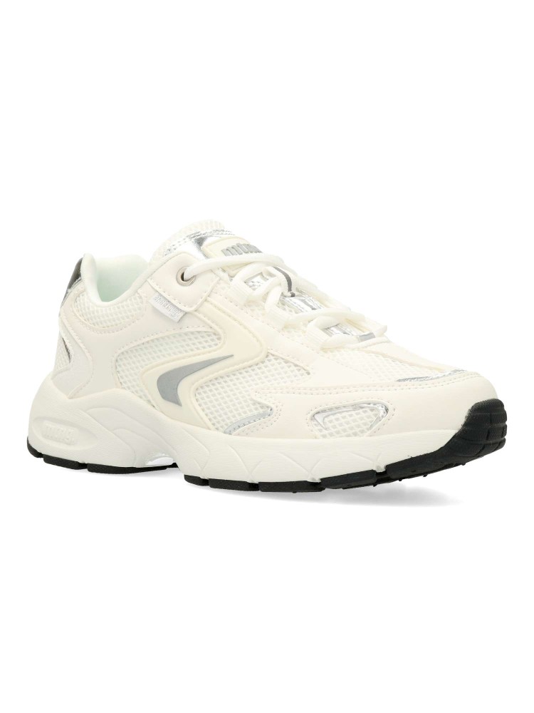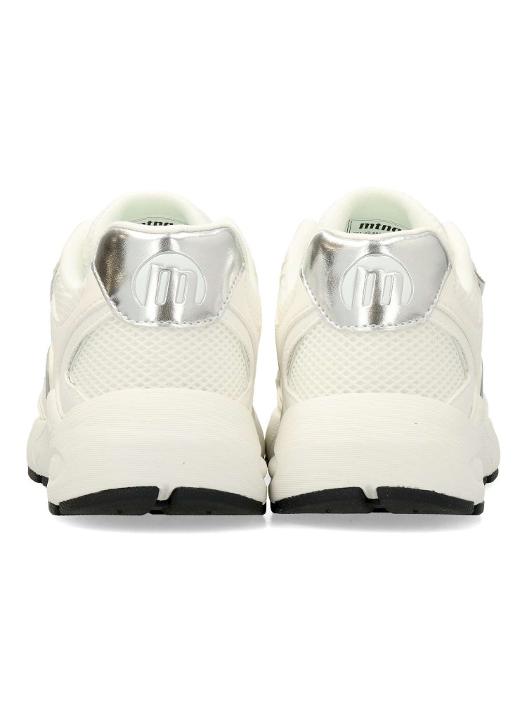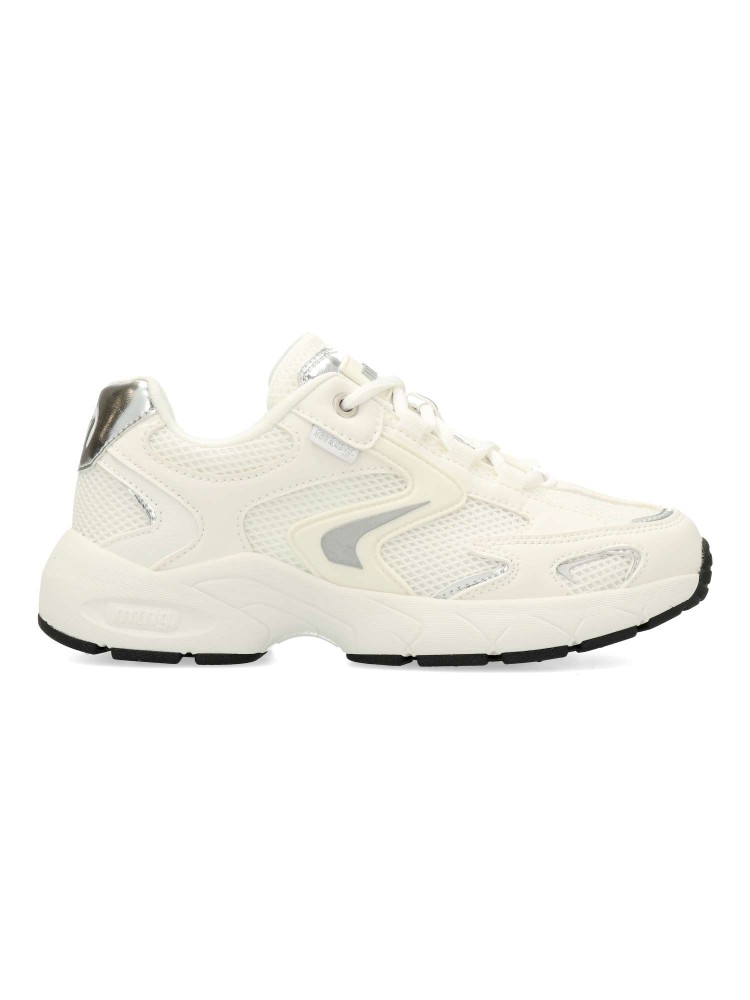 Zapatilla blanca de mujer Mustang, de estilo chunky. Fabricada en piel sintética y malla transpirable. Suela de goma gruesa. Plantilla acolchada y extraíble Starfit . Perfectas para quienes buscan un calzado funcional sin renunciar al estilo.