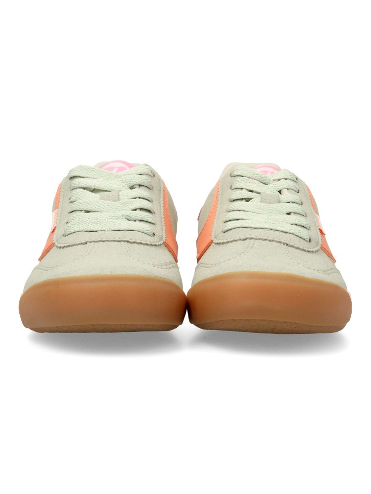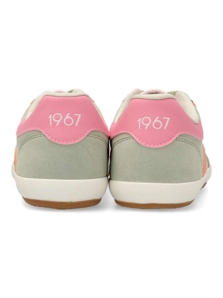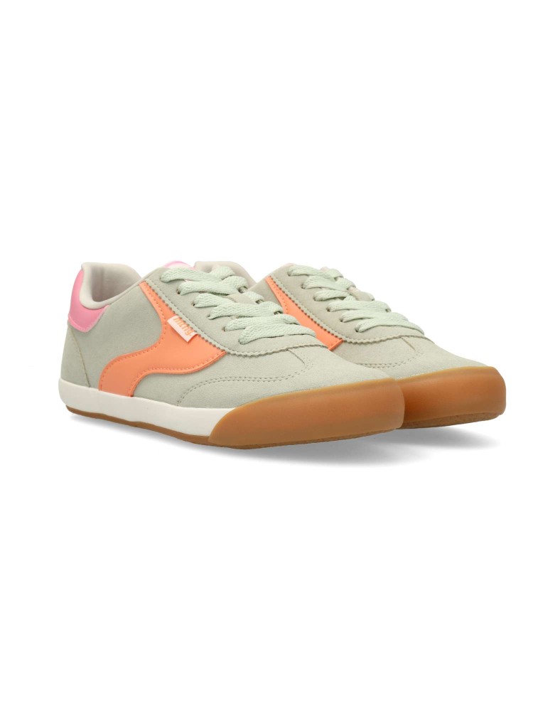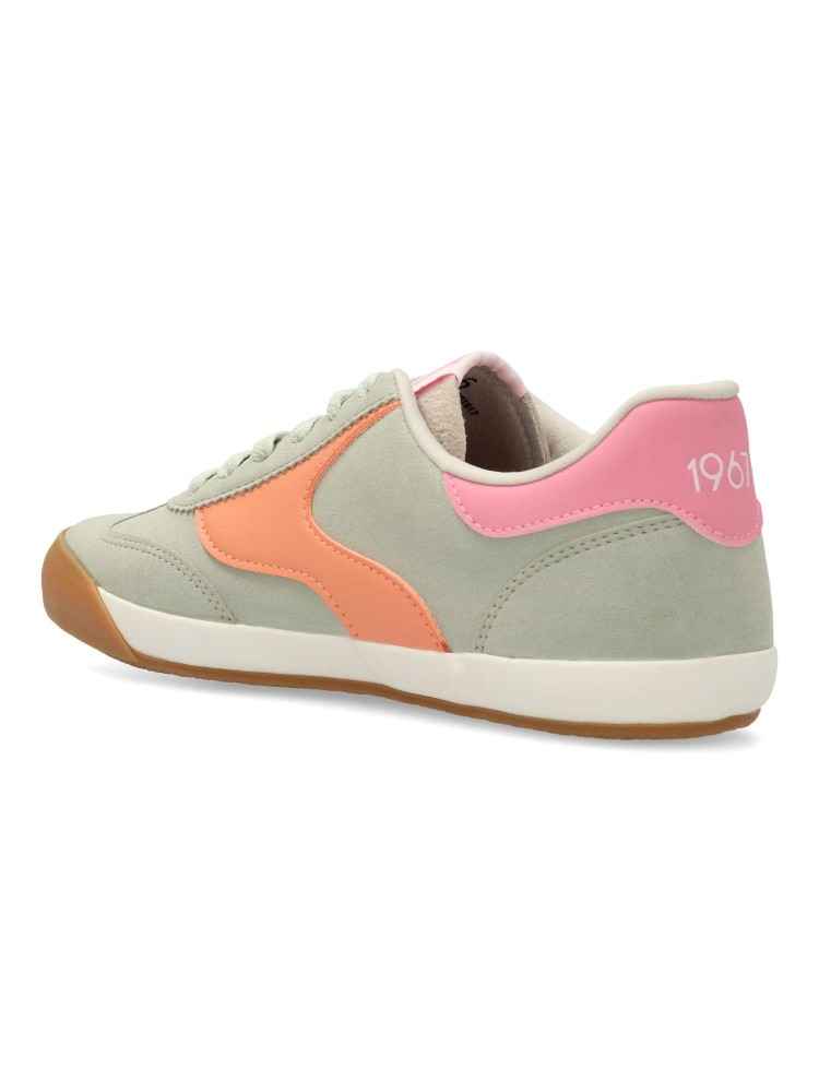Zapatilla deportiva de mujer Mustang. Sneakers fabricado en piel vegana. La suela de goma color caramelo refuerza el look vintage. Equipadas con plantillas con tecnología Starfit, que mejoran la comodidad en cada paso. Certificado vegano.