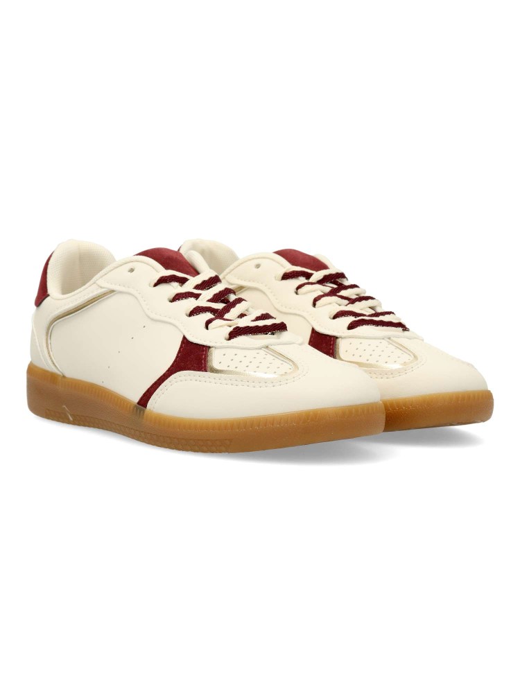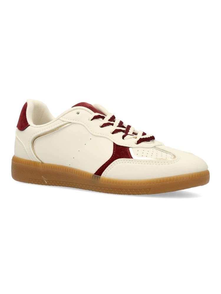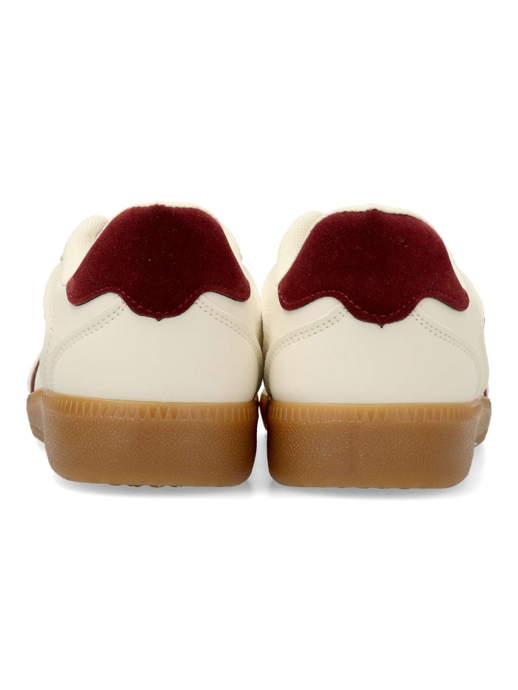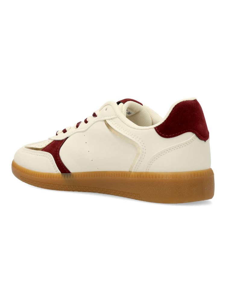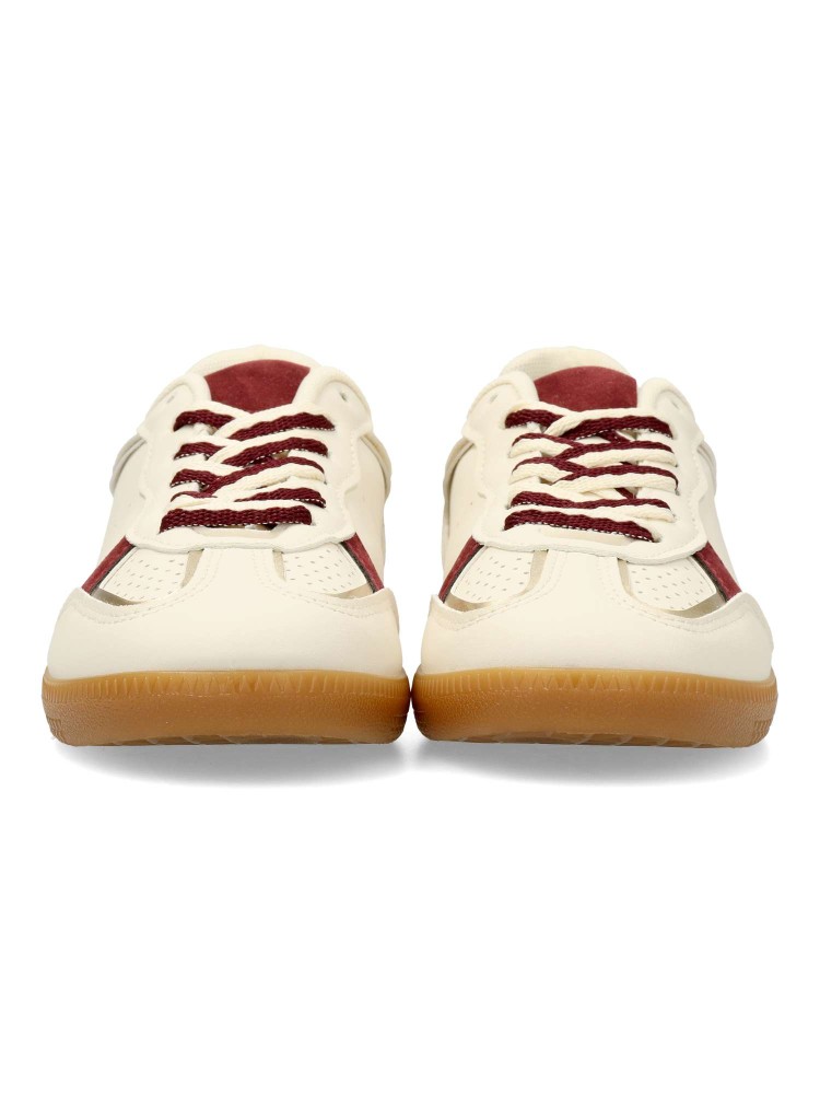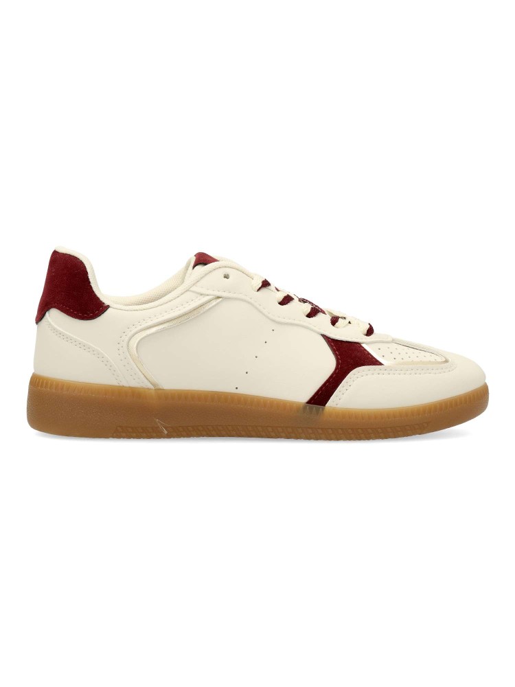 Zapatilla deportiva estilo casual. Cierre de cordones. Sneakers cómodo, fabricado en piel sintética, con suela de goma color caramelo. Plantilla acolchada y extraible. Color beige. Zapatilla con diseño sport, ideal para combinar con tus look urbano.