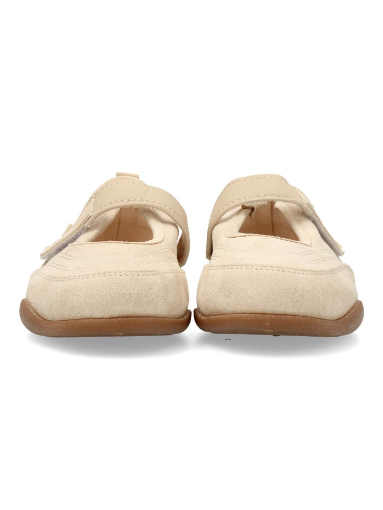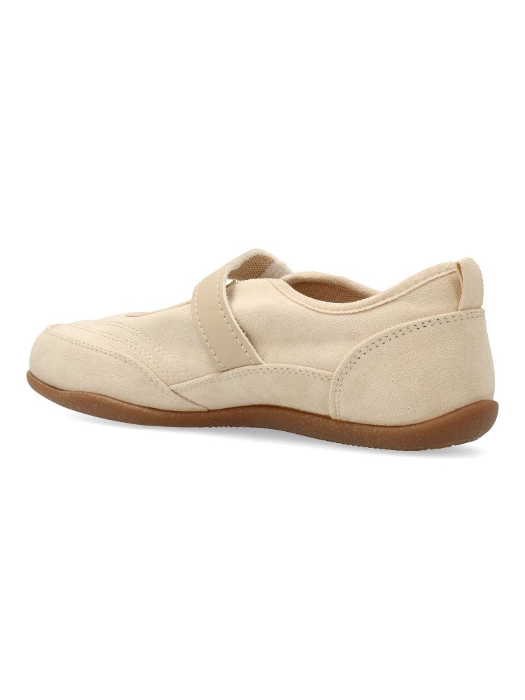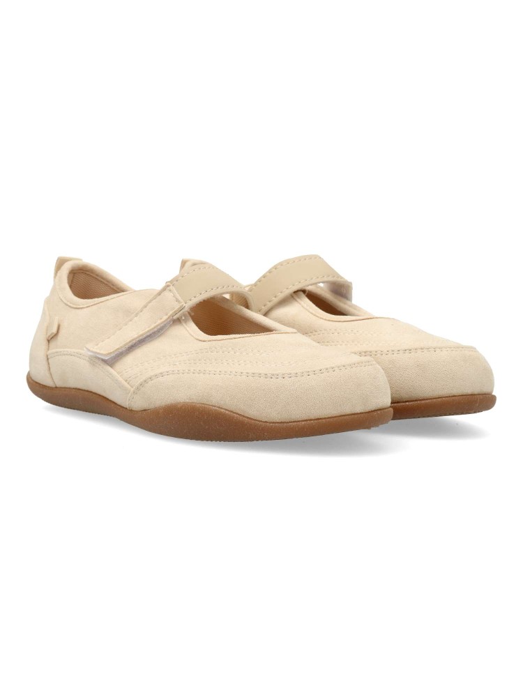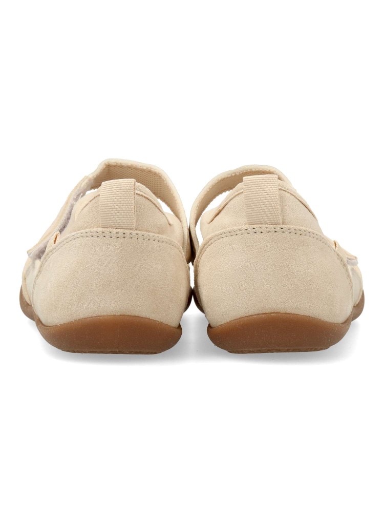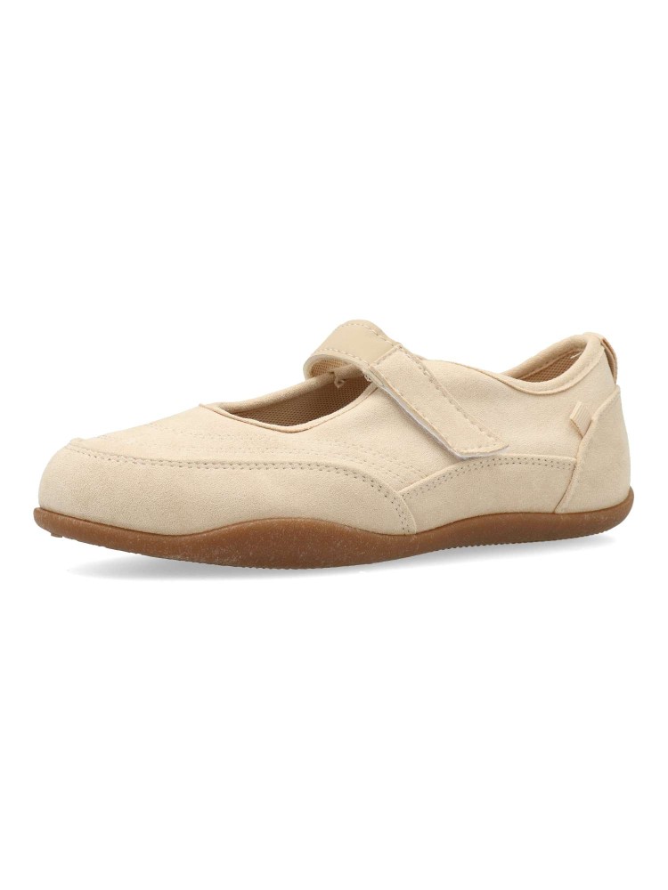 Bailarina plana de mujer, estilo casual. Fabricado en antelina y textil, con suela de goma flexible. Plantilla acolchada. Color beige. Tira adherente al empeine. Diseño sport original y versátil, que ofrece el máximo confort para tu día a día.