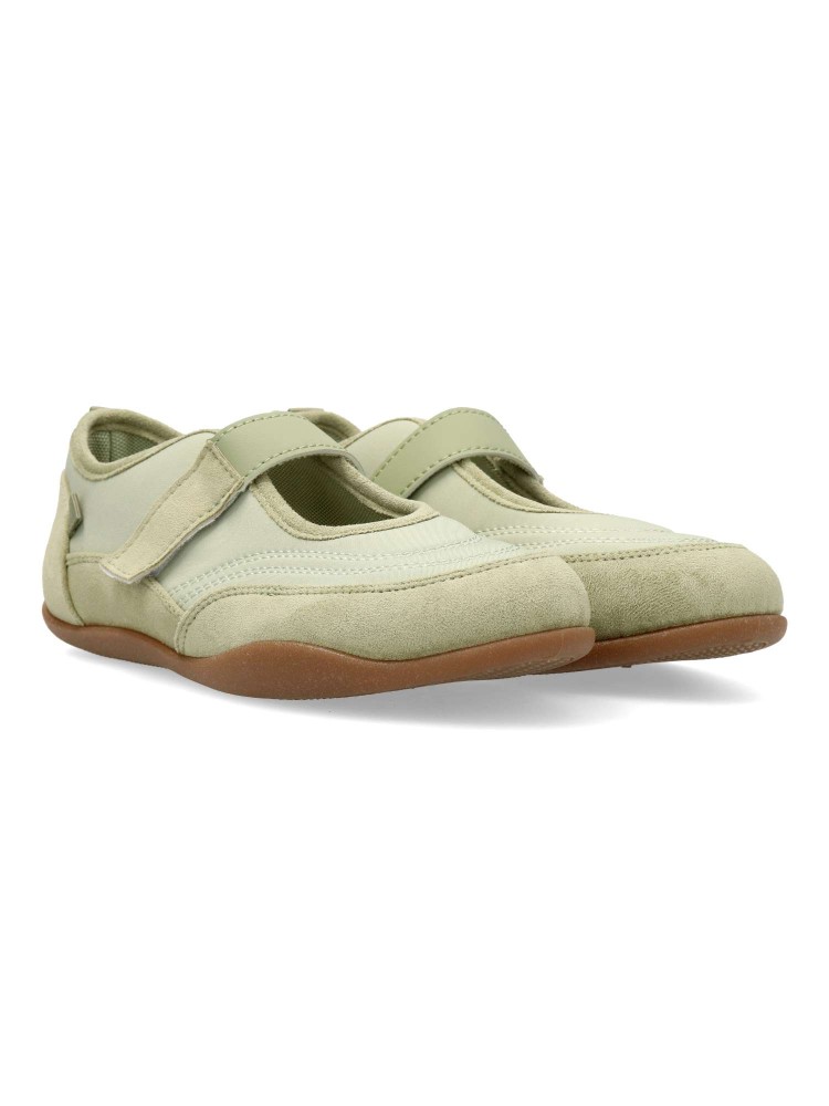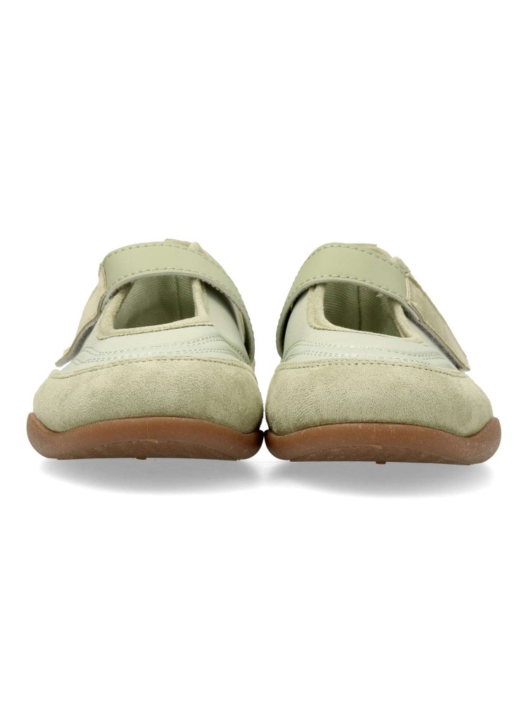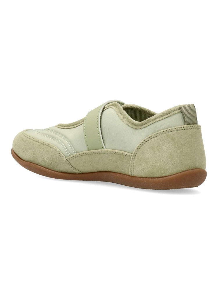 Bailarina plana de mujer, estilo casual. Fabricado en antelina y textil, con suela de goma flexible. Plantilla acolchada. Color verde. Tira adherente al empeine. Diseño sport original y versátil, que ofrece el máximo confort para tu día a día.