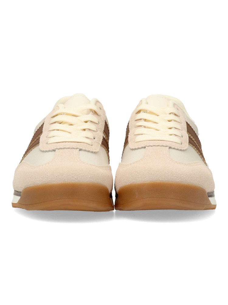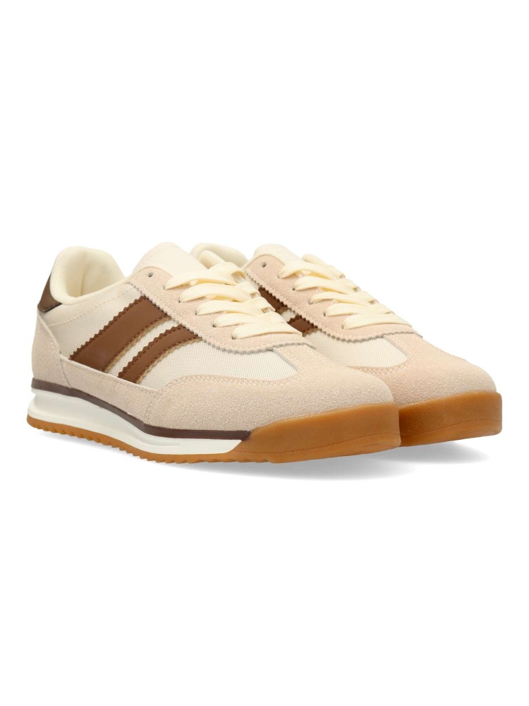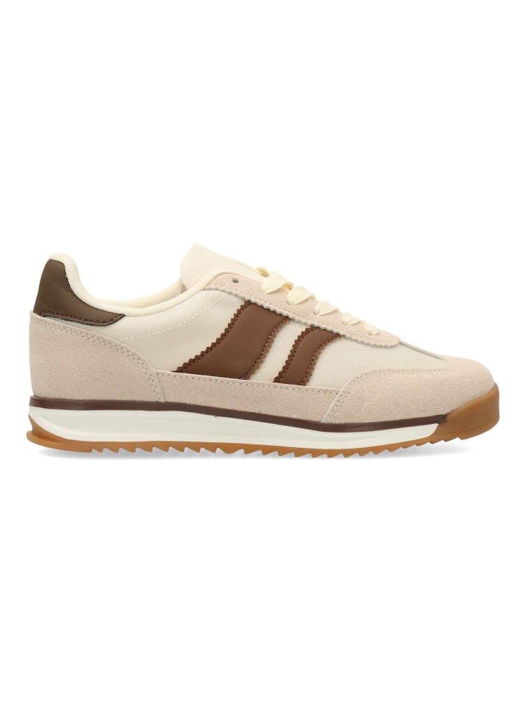 Zapatilla deportiva estilo casual. Cierre de cordones. Sneakers fabricado en piel sintética y textil, con suela de goma dentada. Color beige-marrón. Plantilla acolchada y extraíble. Diseño casual sport, ideal con tus looks urbanos.