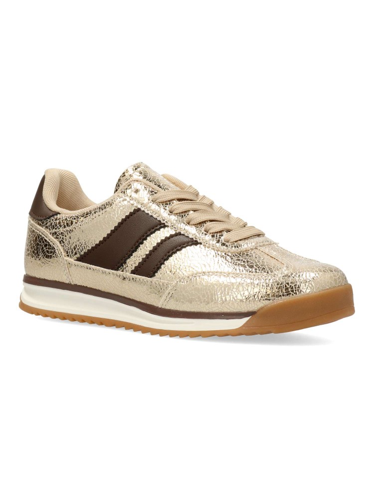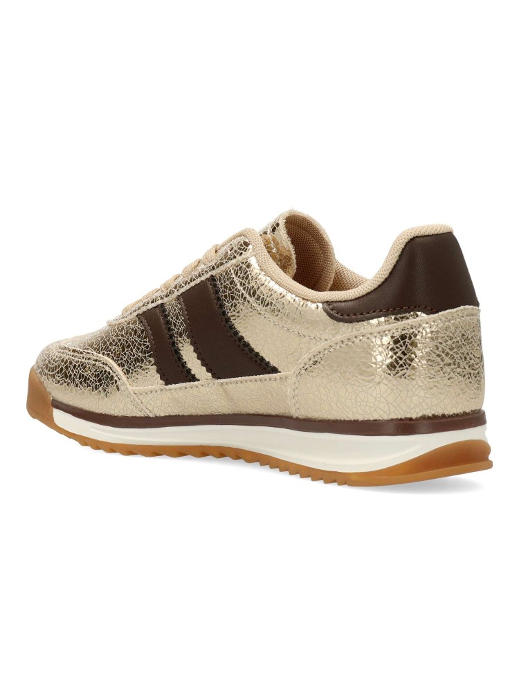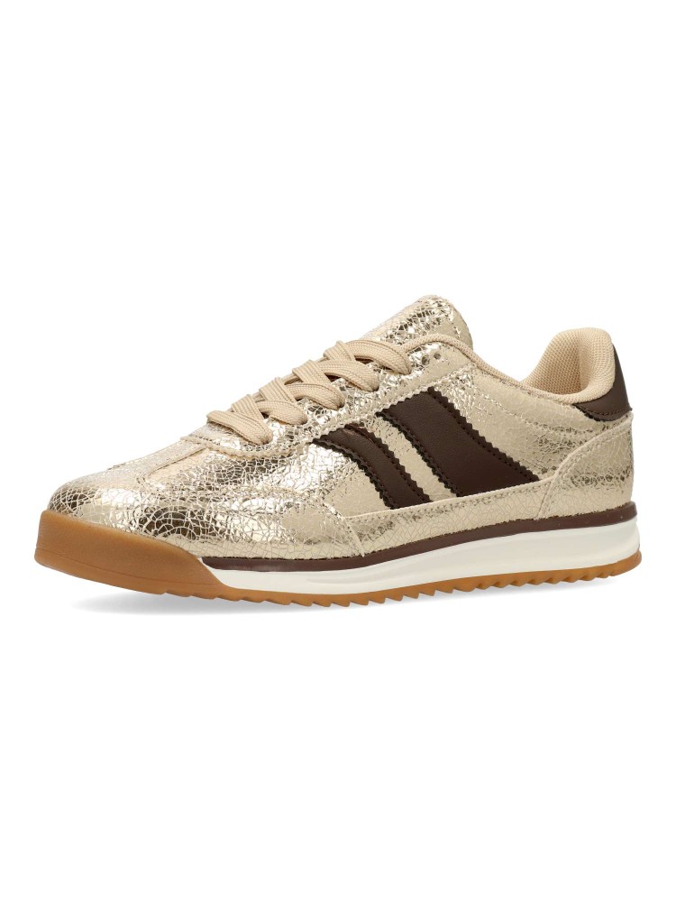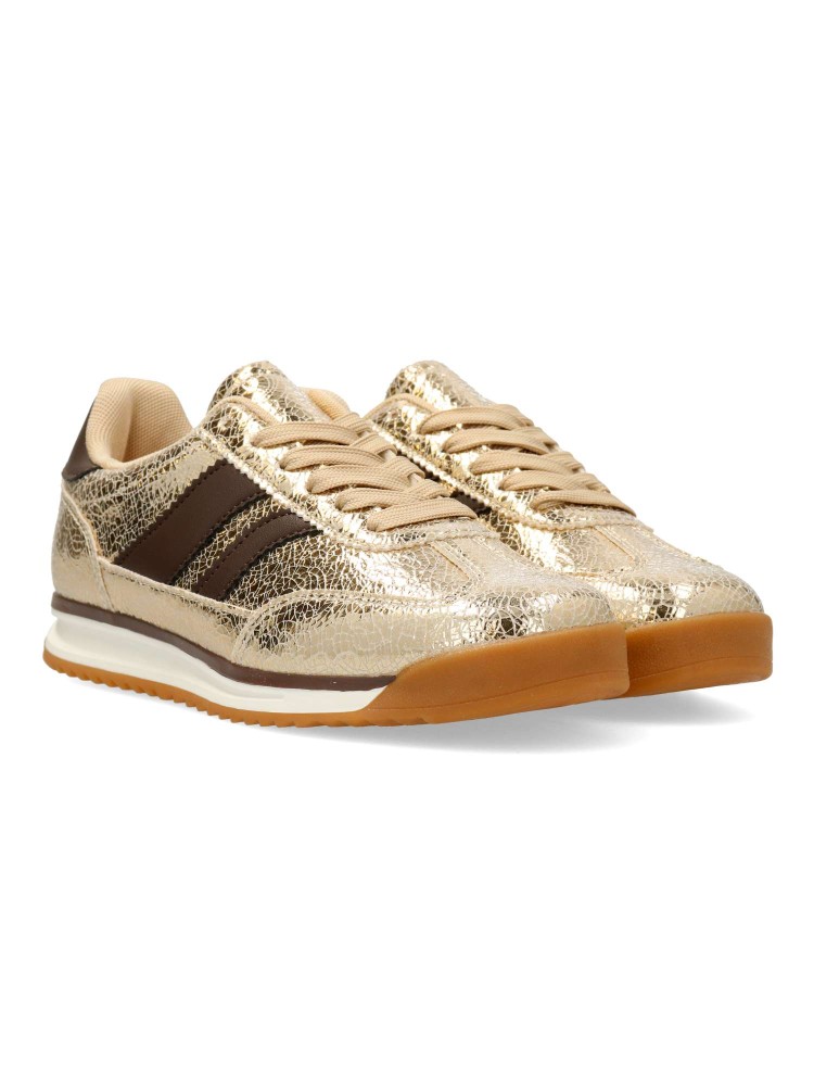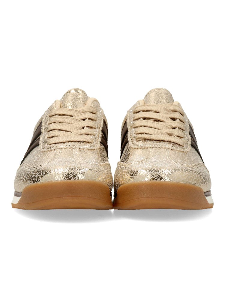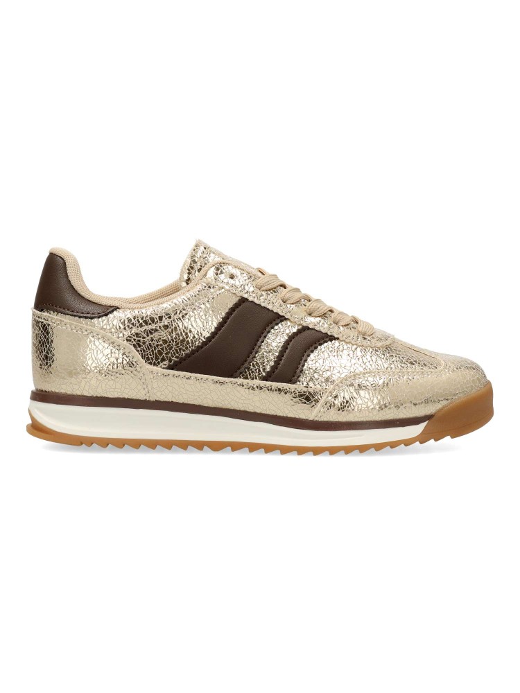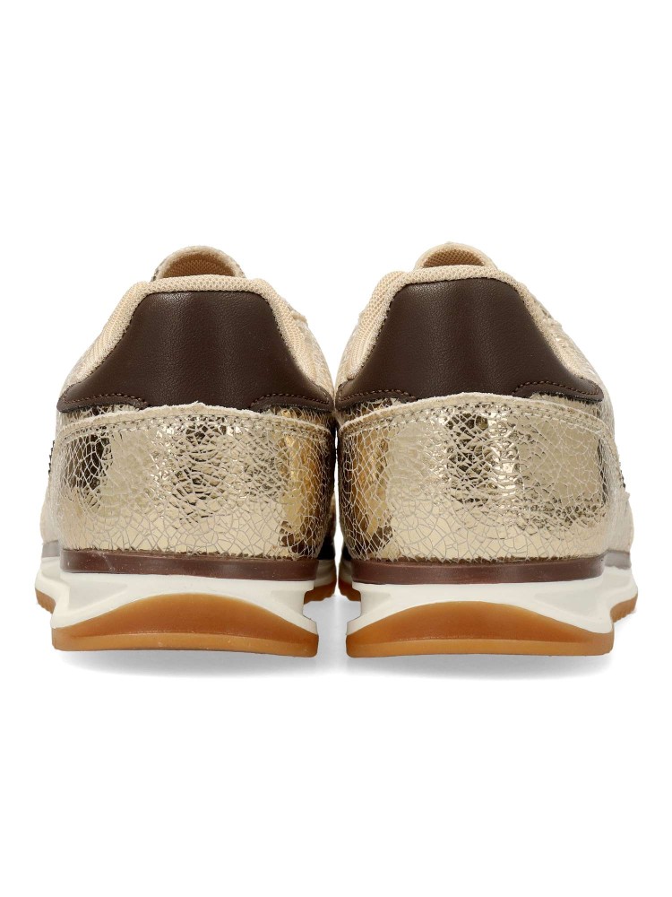 Zapatilla deportiva estilo casual. Cierre de cordones. Sneakers fabricado en piel sintética y textil, con suela de goma dentada. Color oro. Plantilla acolchada y extraíble. Diseño casual sport, ideal con tus looks urbanos.