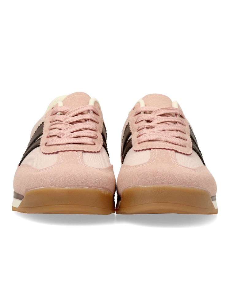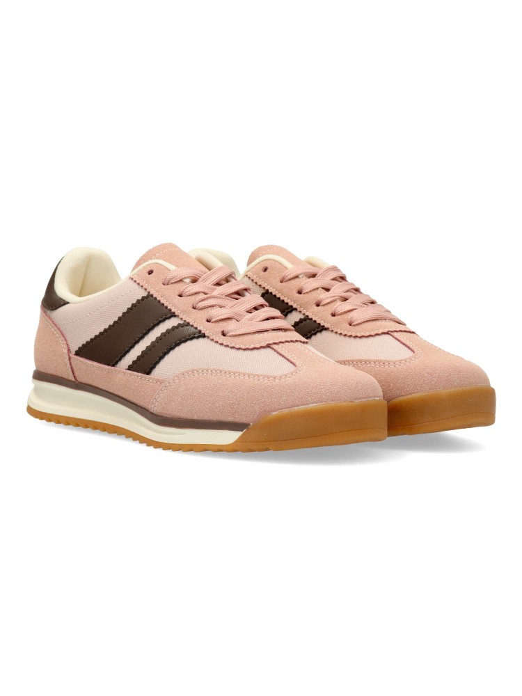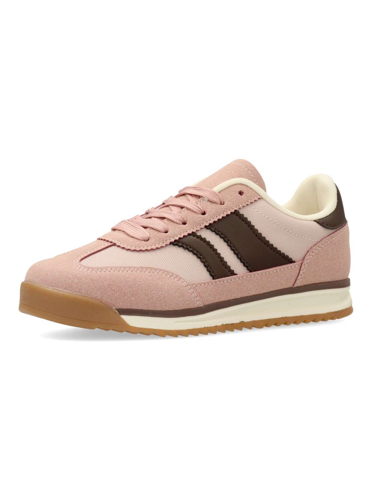 Zapatilla deportiva estilo casual. Cierre de cordones. Sneakers fabricado en piel sintética y textil, con suela de goma dentada. Color rosa. Plantilla acolchada y extraíble. Diseño casual sport, ideal con tus looks urbanos.