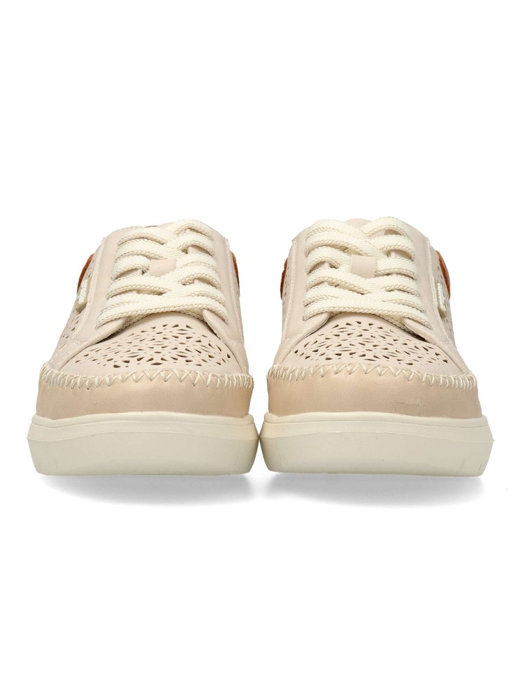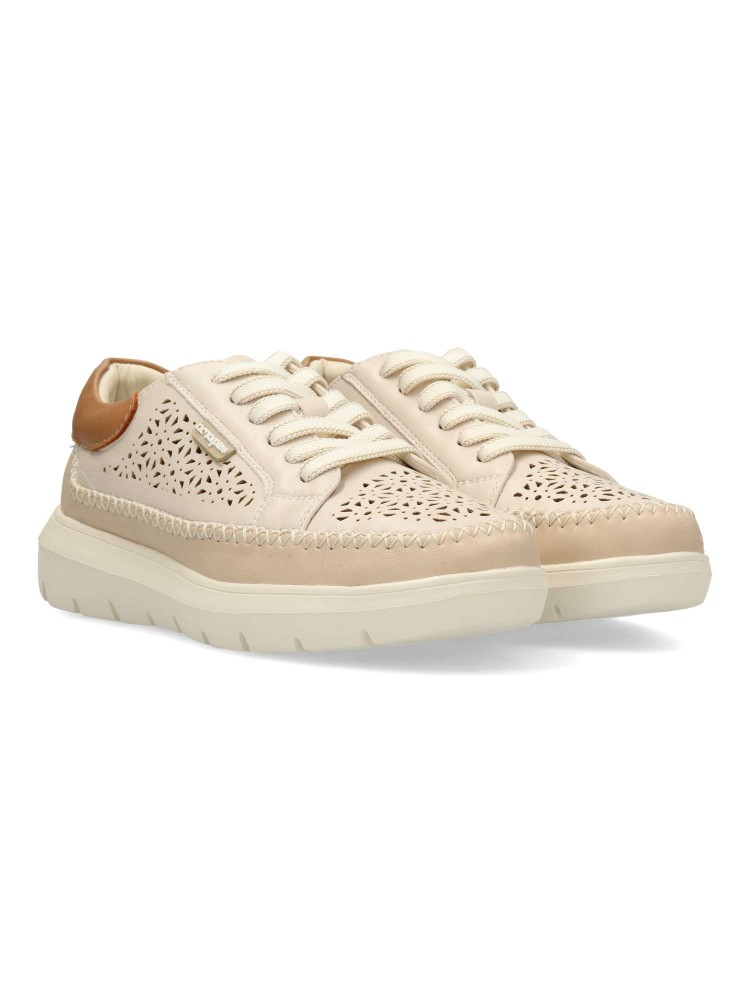 Zapato sport de mujer, estilo casual. Cierre de cordones. Sneakers cómodo, fabricado en piel sintética troquelada, con suela de goma ligera y flexible. Plantilla acolchada y extraíble. Diseño versátil, tanto para looks arreglados como informales.