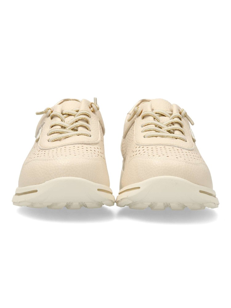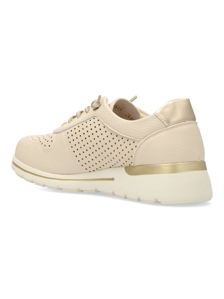 Zapato sport de mujer, estilo casual. Cierre de cordón elástico. Sneakers cómodo, fabricado en piel sintética troquelada, con suela de goma ligera y flexible. Plantilla acolchada y extraíble. Diseño versátil, tanto para looks arreglados como informales.