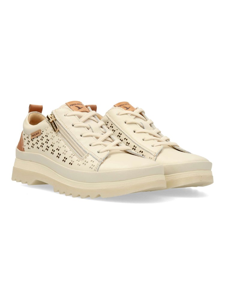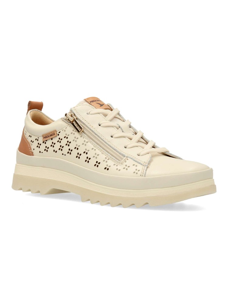 Zapato de mujer estilo casual -VIGO-. Cuida tus pasos con este zapato cómodo, fabricado en piel picada color nata, con suela de goma con tecnología Shock Comfort para ofrecerte la máxima flexibilidad y reducción de impactos.