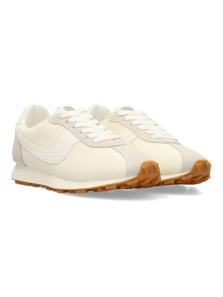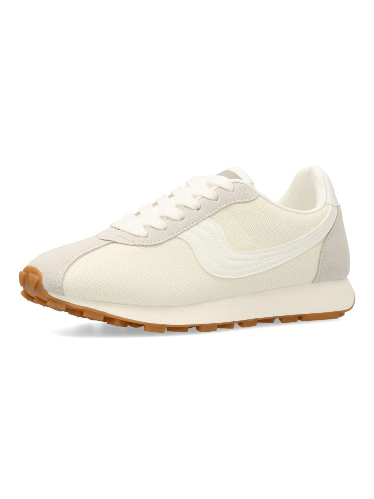 Deportiva estilo casual. Cierre de cordones. Sneakers cómodo, fabricado en piel sintética y textil, con suela de goma flexible. Plantilla acolchada y extraíble. Color blanco. Zapatilla con diseño casual vintage, ideal con tus looks de temporada.