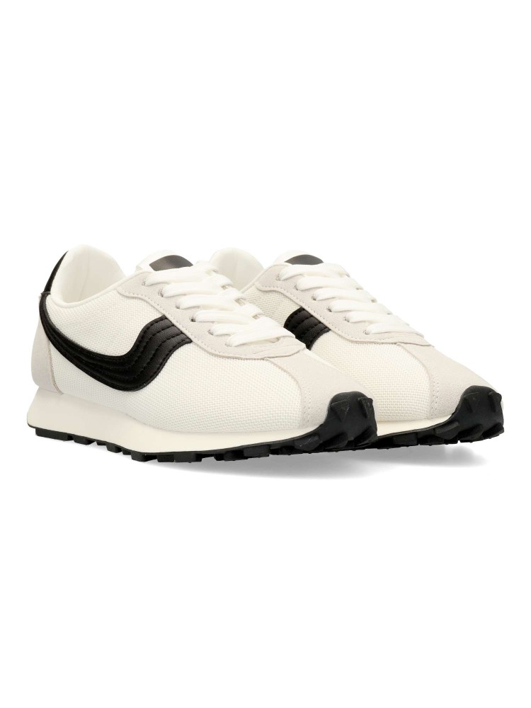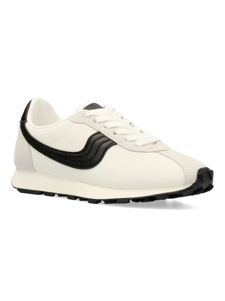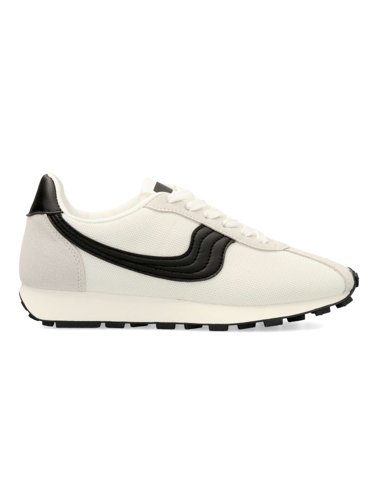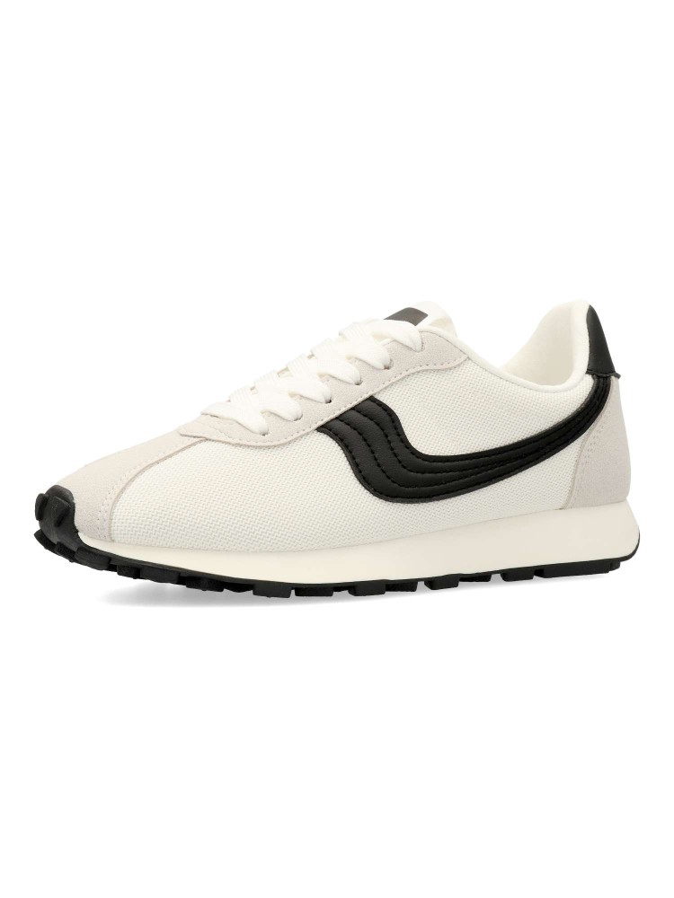 Deportiva estilo casual. Cierre de cordones. Sneakers cómodo, fabricado en piel sintética y textil, con suela de goma flexible. Plantilla acolchada y extraíble. Color blanco-negro. Zapatilla con diseño casual vintage, ideal con tus looks de temporada.