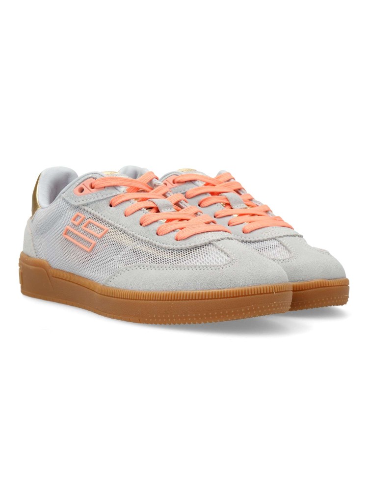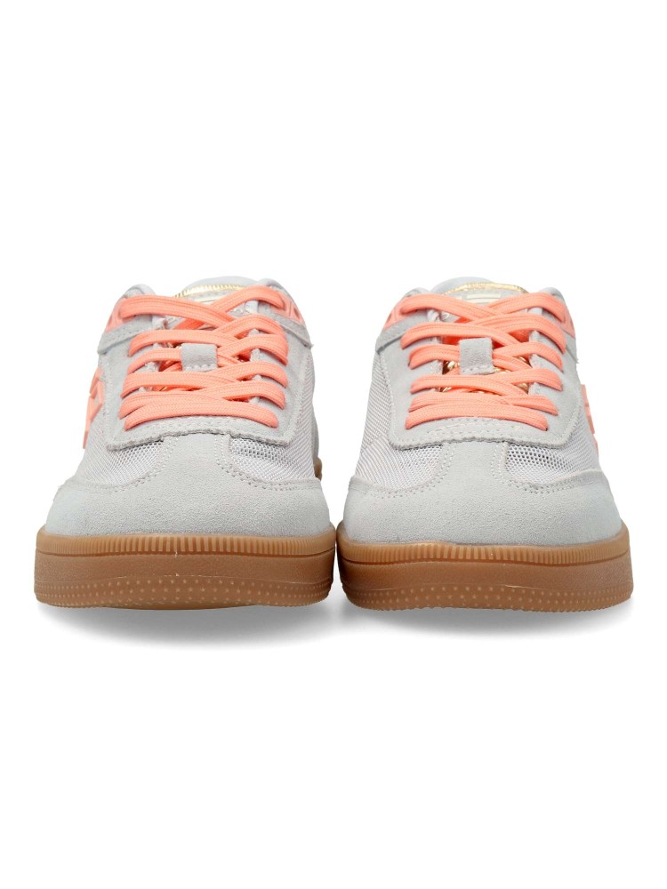 Zapatilla deportiva de mujer, estilo casual. Cierre de cordones. Sneakers fabricado en piel sintética y textil rejilla. Suela de goma. Plantilla acolchada y extraíble. Color beig-naranja. Perfecto para quienes buscan estilo y comodidad en su día a día.