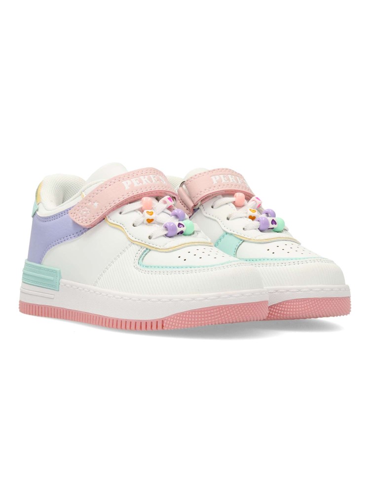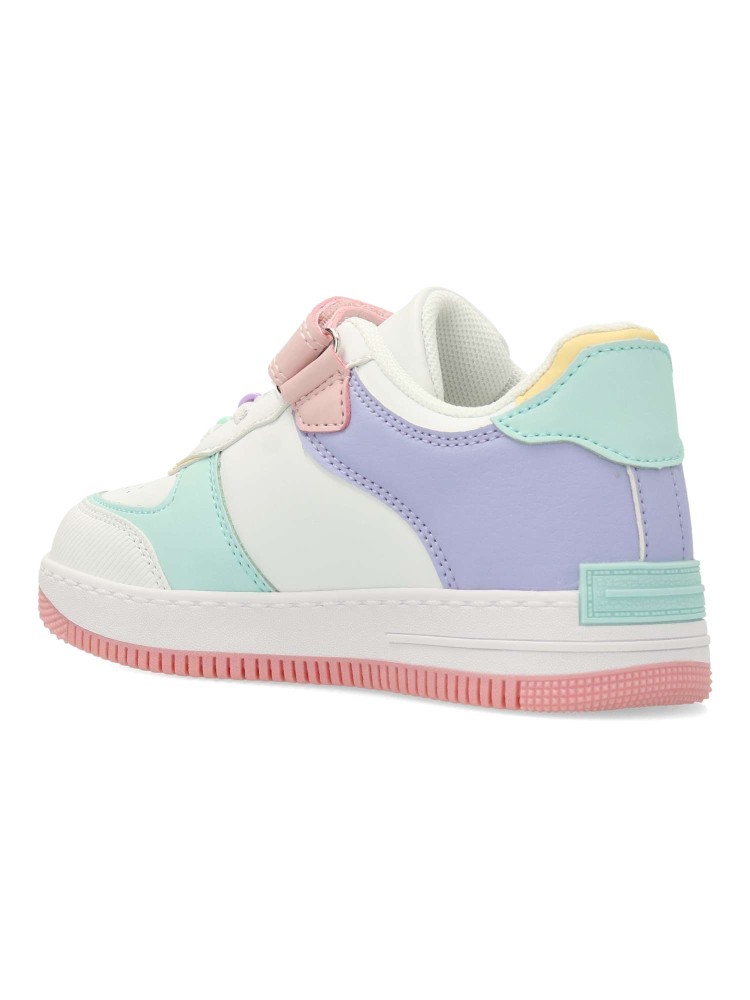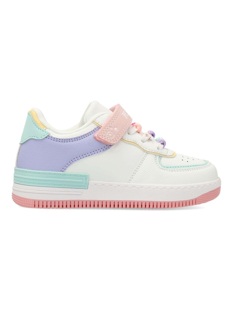 Zapatilla deportiva de niña, estilo casual. Sneakers cómodo, fabricado en piel sintética, con suela de goma. Plantilla acolchada. Deportiva multicolor tonos pastel, ideal para combinarlas con tus looks de temporada.
