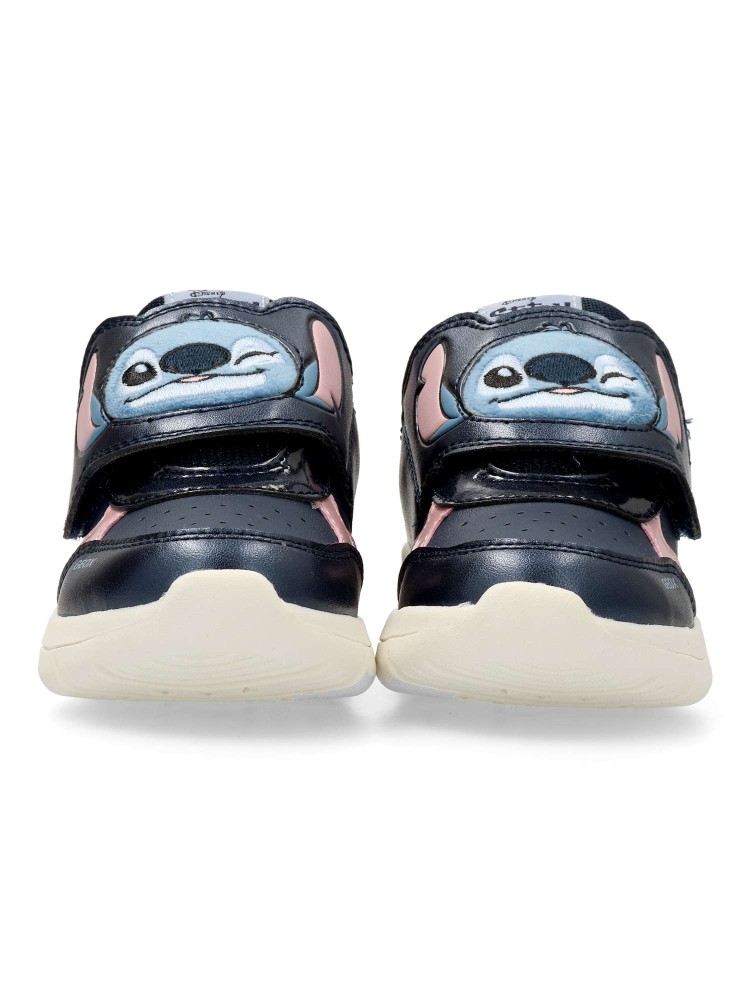 Deportivo cómodo de niña, estilo casual. Cierre adherente. Fabricado en piel sintética y textil, con suela de goma. Detalle de luces en la suela. Plantilla acolchada y extraíble. Transpirable, cómodo y flexible. Stitch.