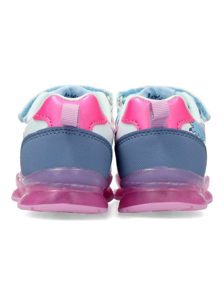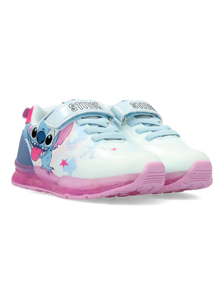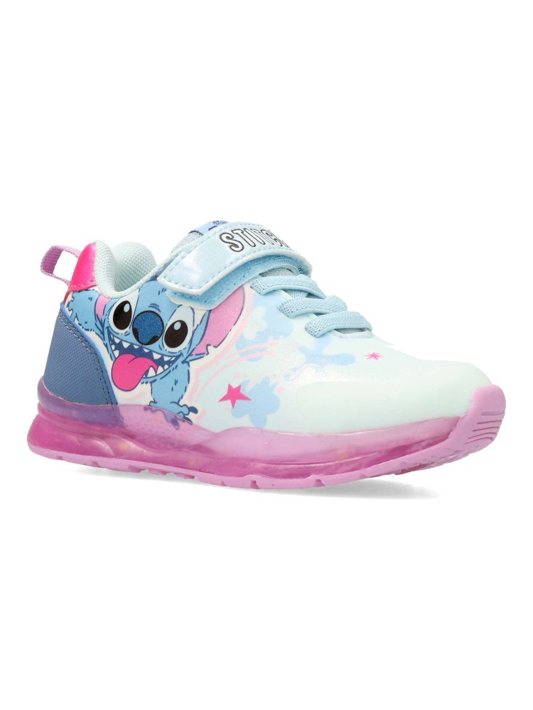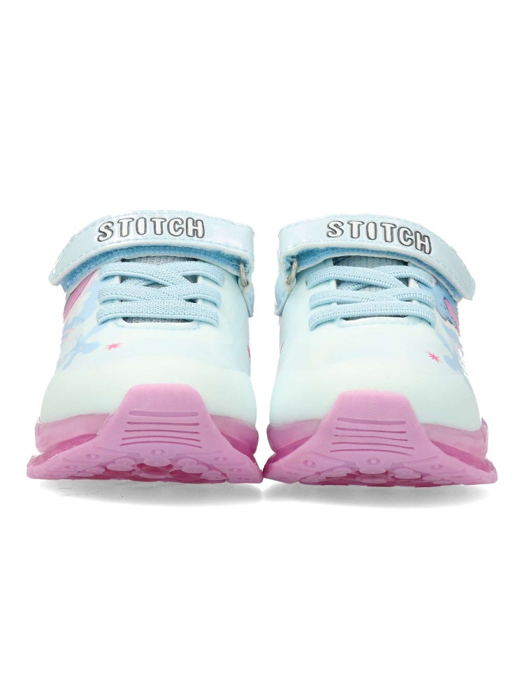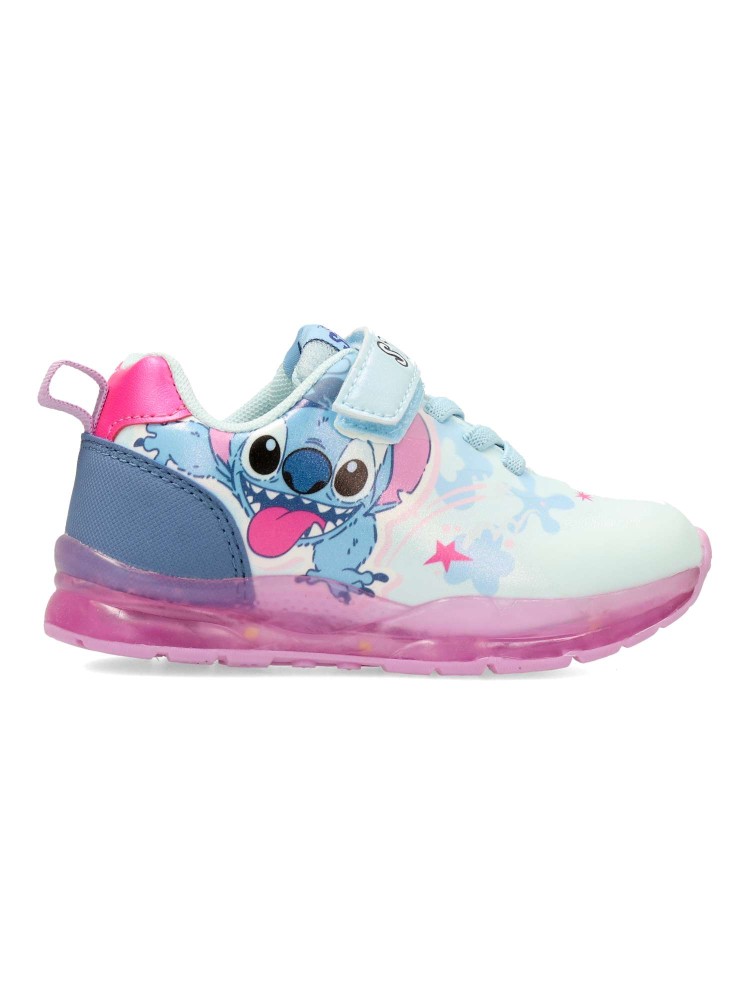 Zapatillas deportivas Infantiles Stich. Estilo casual para niña con cierre adherente y cordón elástico. Fabricado en material sintético y textil. Detalle de luces en la suela. Color lila. Diseñado para el disfrute y confort de los peques.