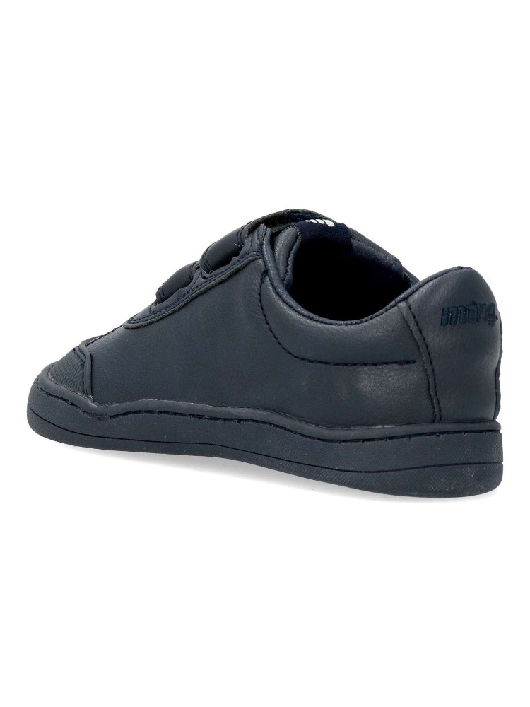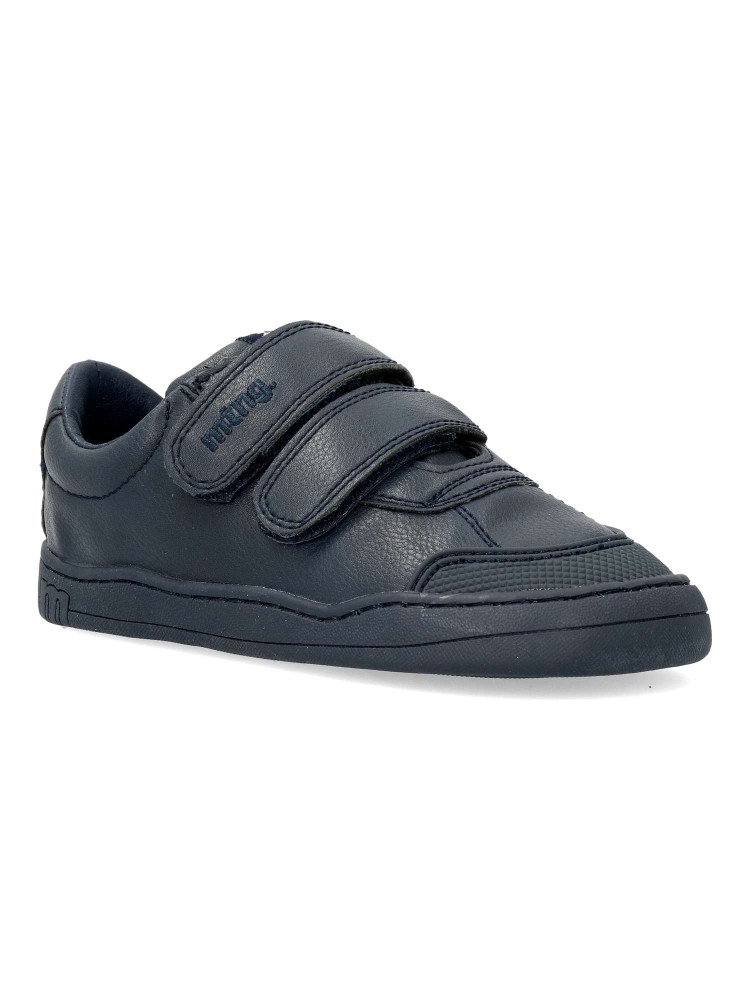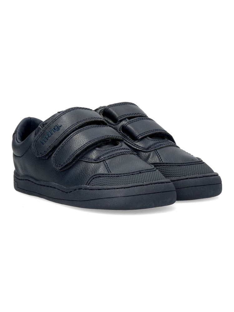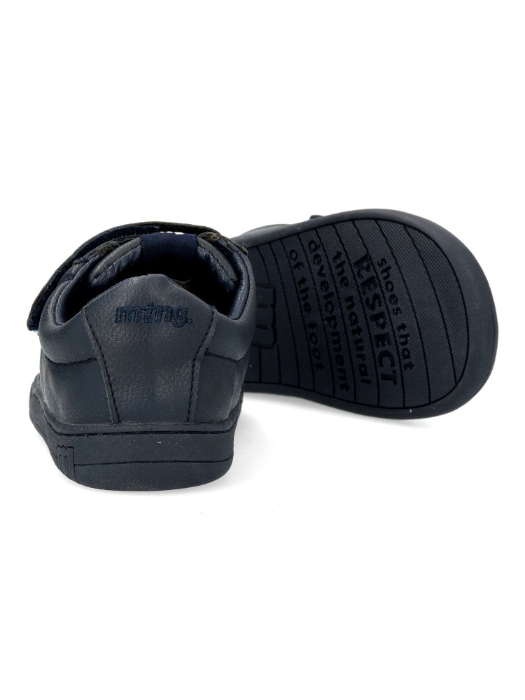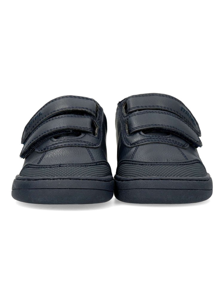 Zapatilla deportiva Free Mustang para chic@, de color marino. Fabricada en piel vegana, con suela de goma. Puntera ancha, plantilla extraíble y cierre de doble velcro. Diseñada para respetar el desarrollo natural del pie del niño y la niña.