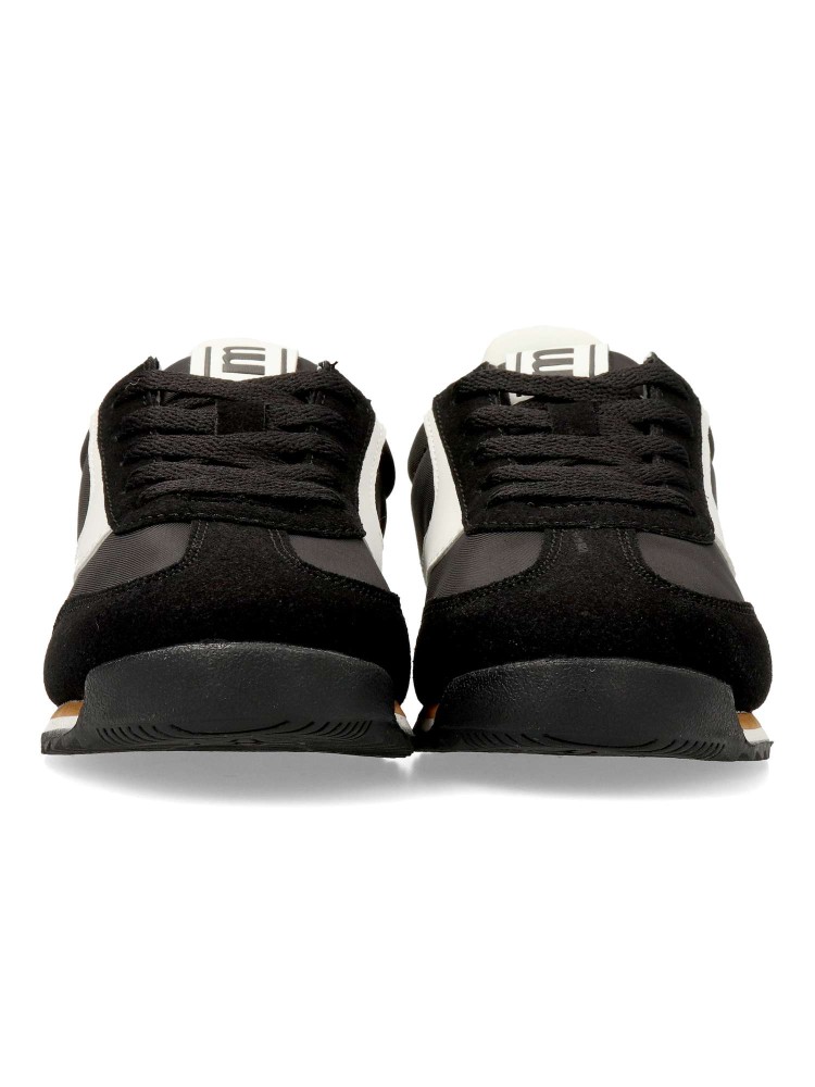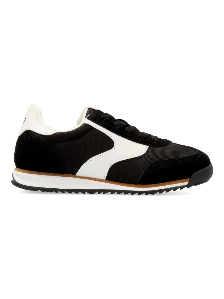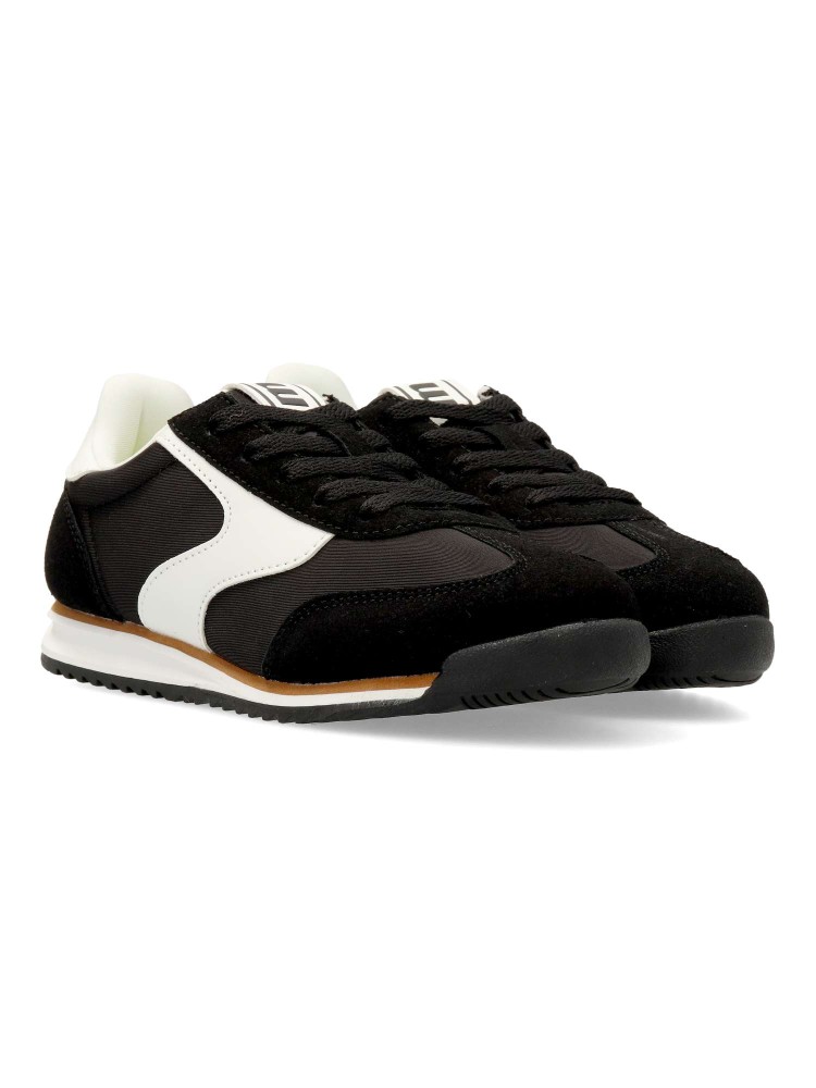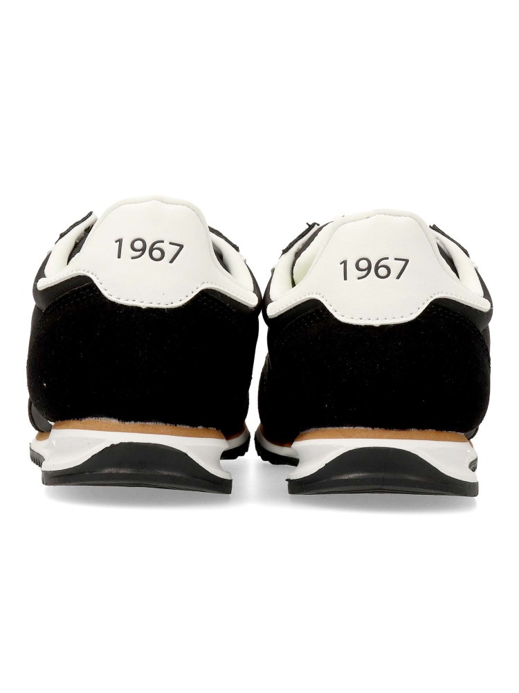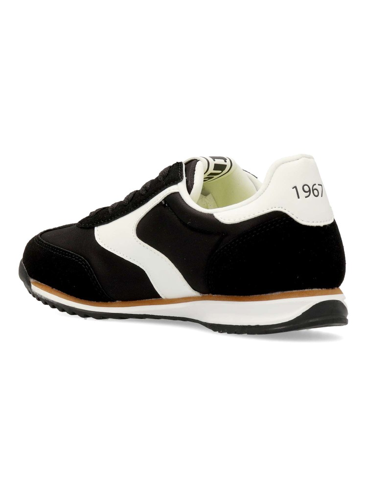 Zapatillas de color negro para niño, modelo Olympic de Mustang. Inspirada en el running clásico para un look atemporal y versátil. Diseño ligero y transpirable, con cierre de cordones. Plantilla acolchada y extraíble. Certificado vegano.