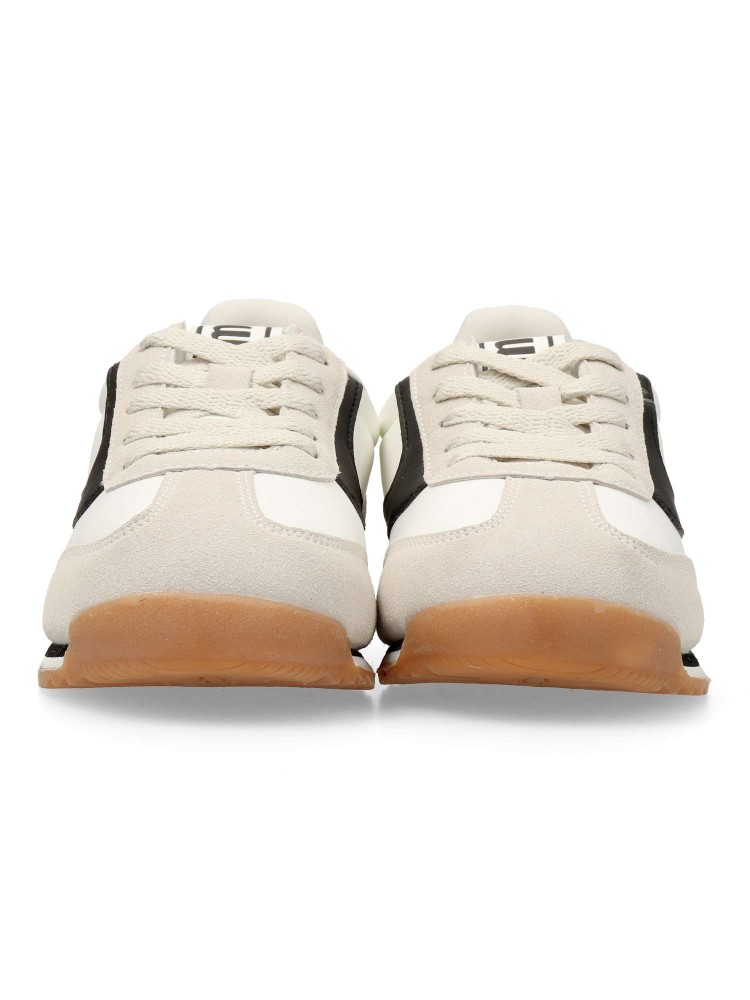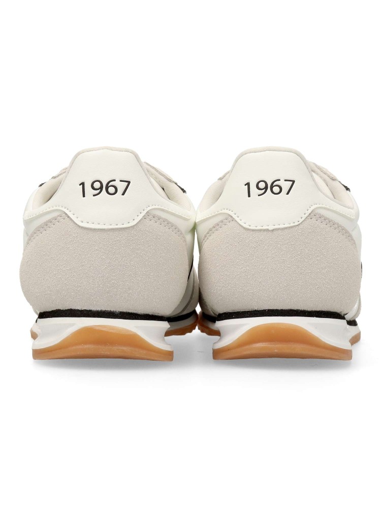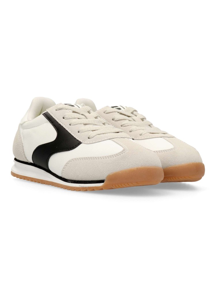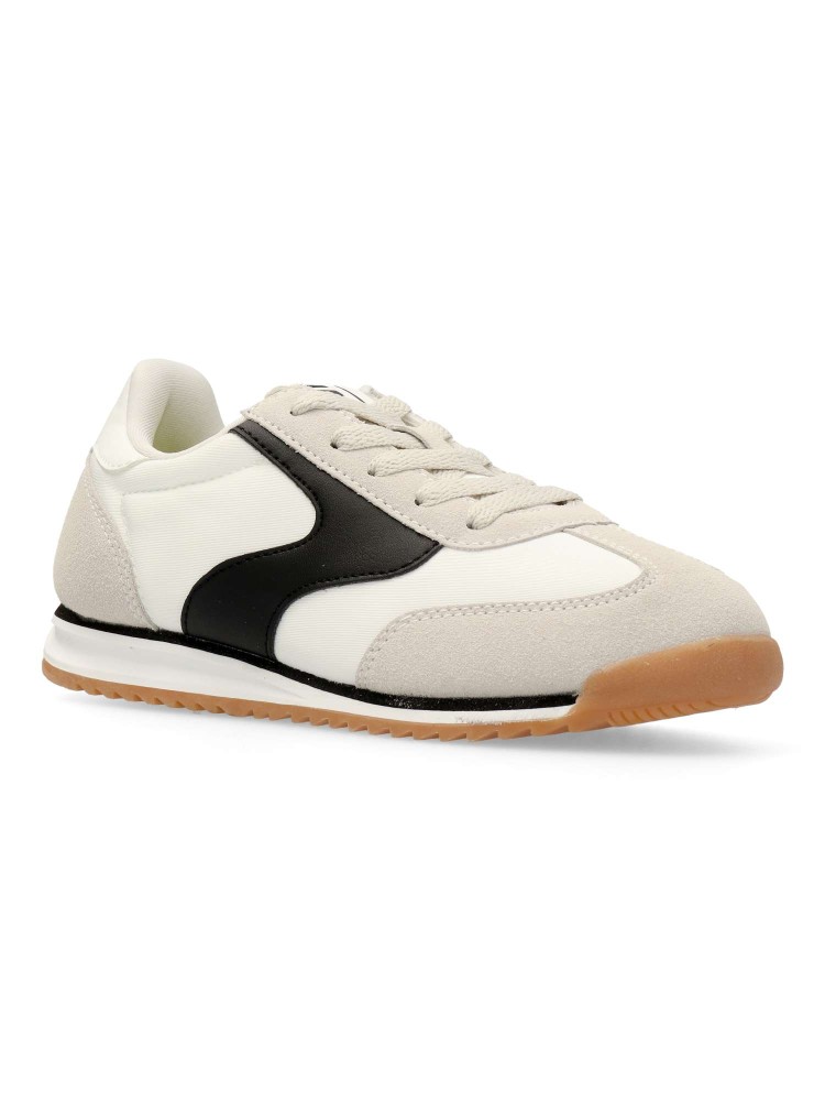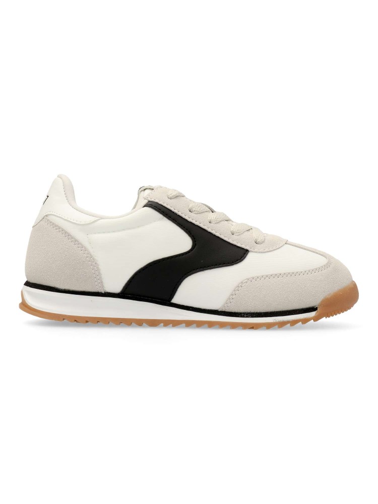Zapatillas de color blanco para niño, modelo Olympic de Mustang. Inspirada en el running clásico para un look atemporal y versátil. Diseño ligero y transpirable, con cierre de cordones. Plantilla acolchada y extraíble. Certificado vegano.