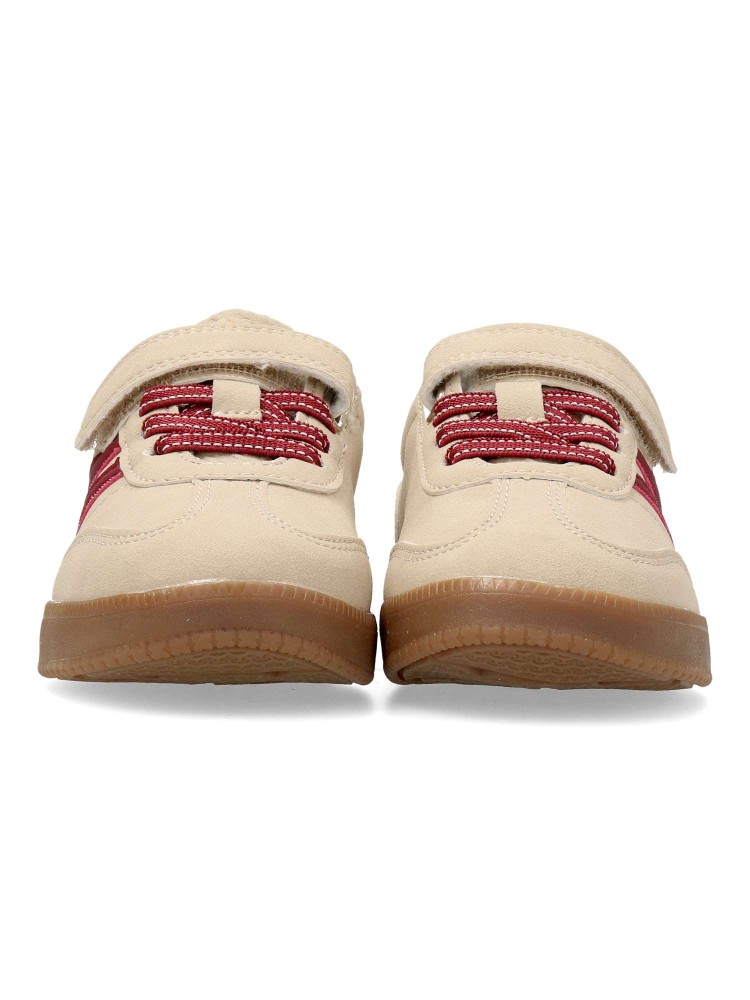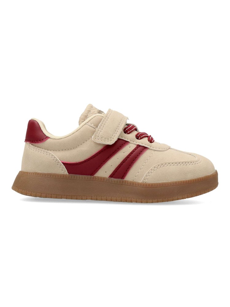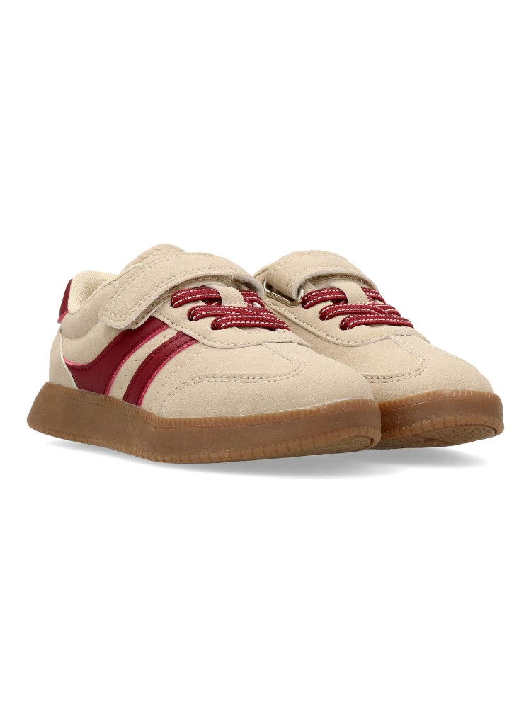 Zapatilla deportiva de niñ@, estilo casual. Cierre adherente y cordón elástico. Sneakers cómodo, fabricado en piel sintética, con suela de goma. Plantilla acolchada. Color marrón-burdeos. Ideal con outfits urbanos y más informales.