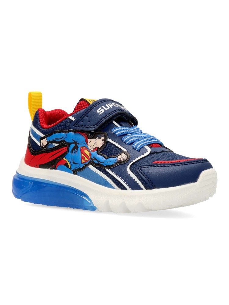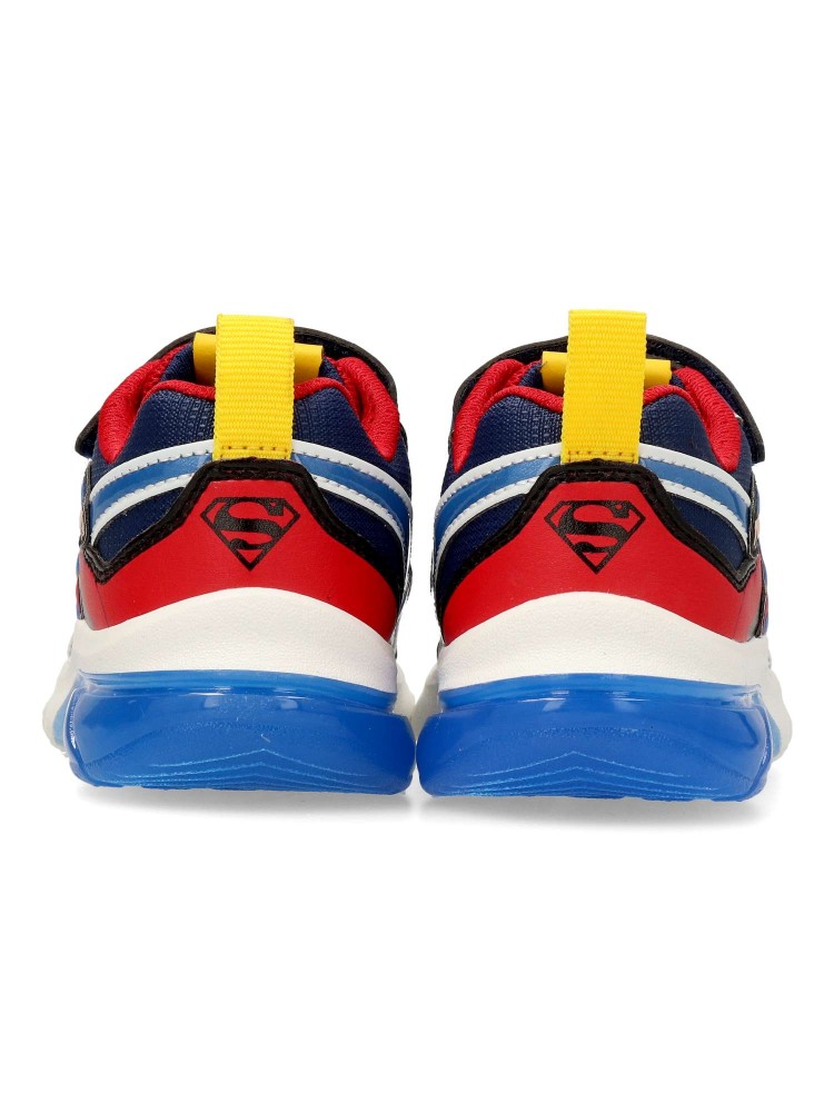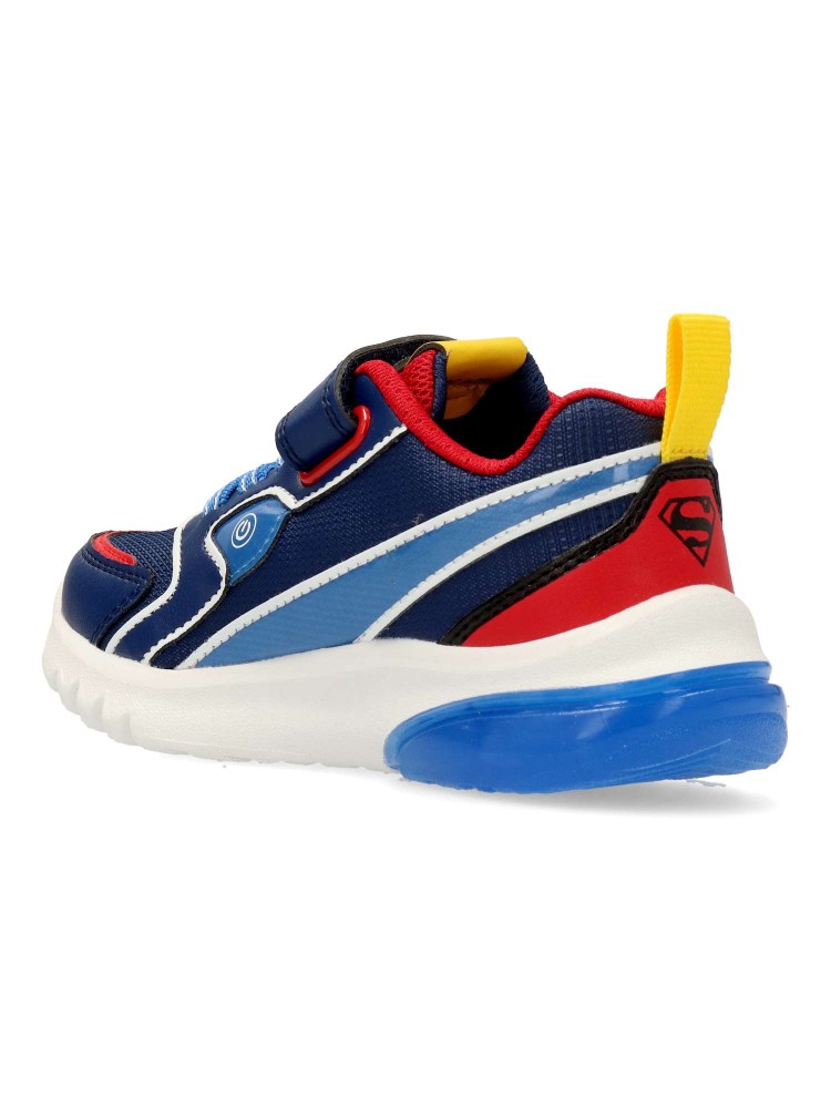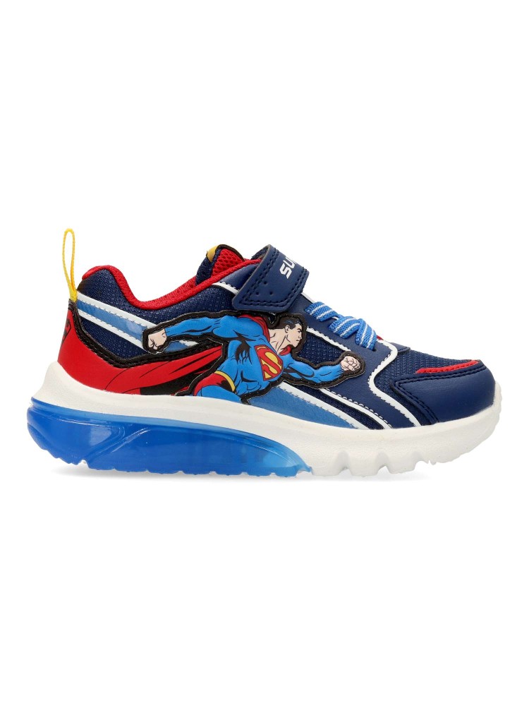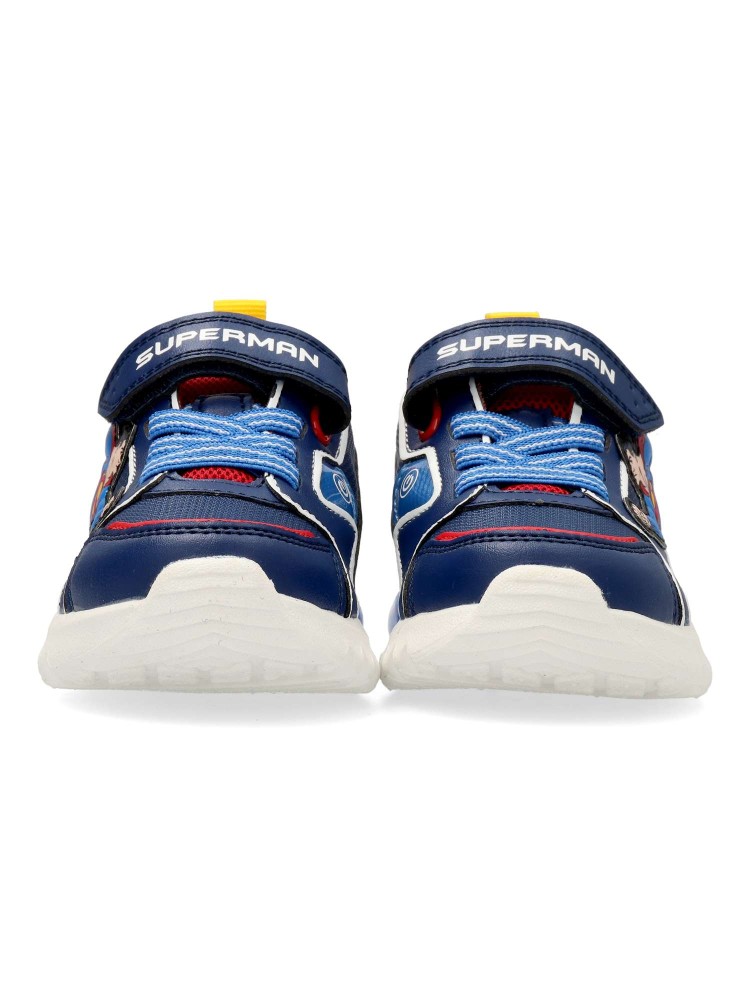 Deportivo cómodo de niño, estilo casual. Cierres adherentes. Fabricado en piel sintética y textil, con suela de goma. Detalle de luces en la suela. Plantilla acolchada y extraíble. Transpirable, cómodo y flexible. Superman.