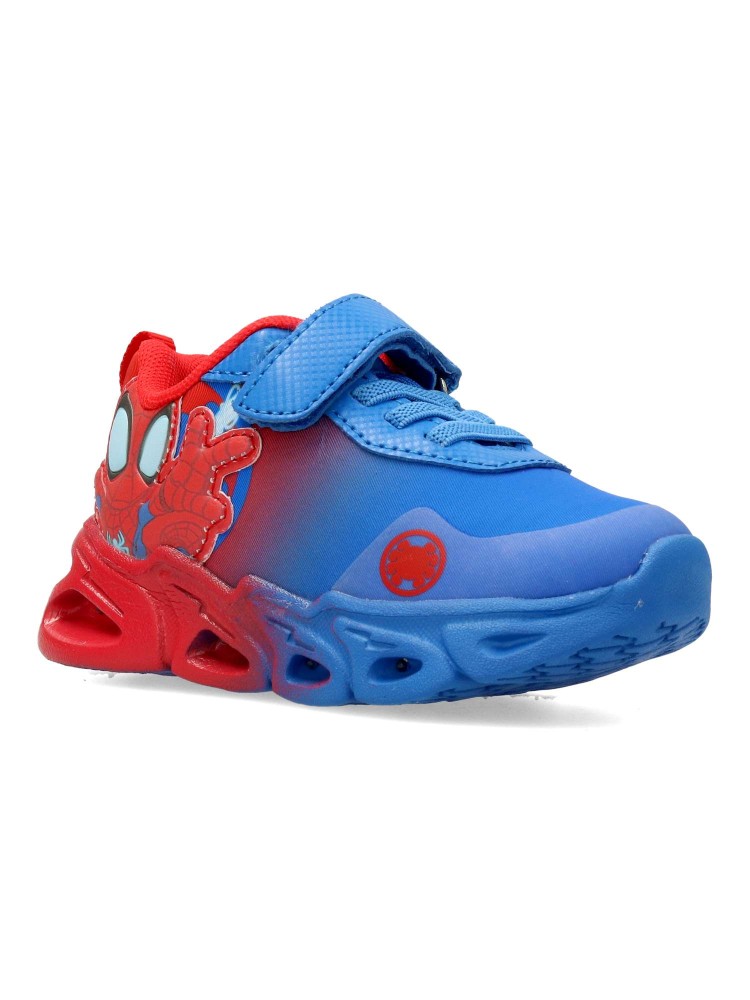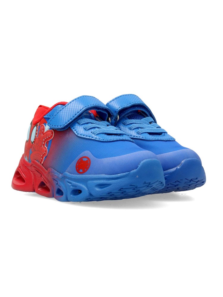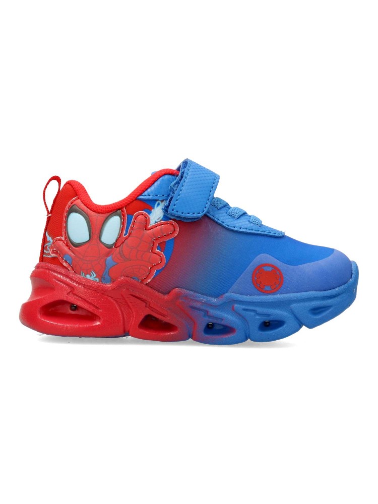 Zapatillas deportivas Infantiles Spidey. Estilo casual para niño con cierre adherente y cordones elásticos. Fabricado en material sintético y textil. Detalle de luces en la suela. Color rojo-azul. Diseñado para el disfrute y confort de los peques.