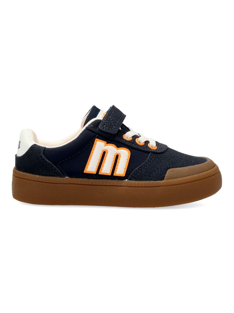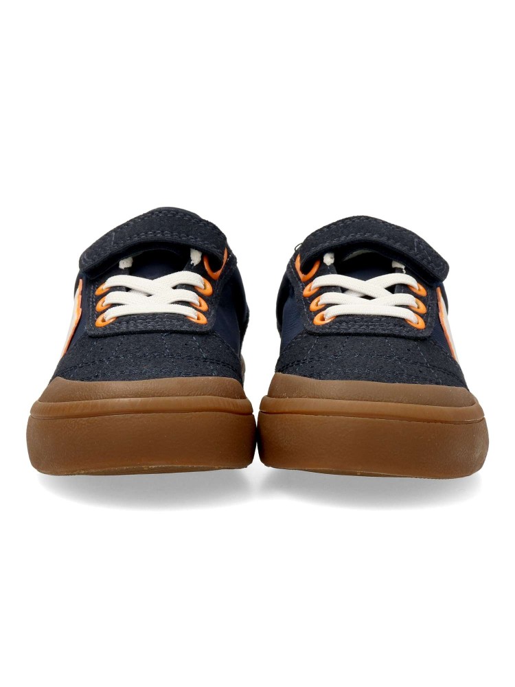 Deportiva para niños, con suela gruesa color caramelo. Cierre mixto de cordones elásticos con tira adherente. Puntera reforzada. Ideal para acompañar el ritmo activo de los más pequeños en el cole o en sus actividades diarias. Certificado vegano.
