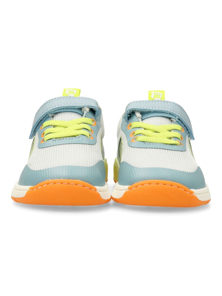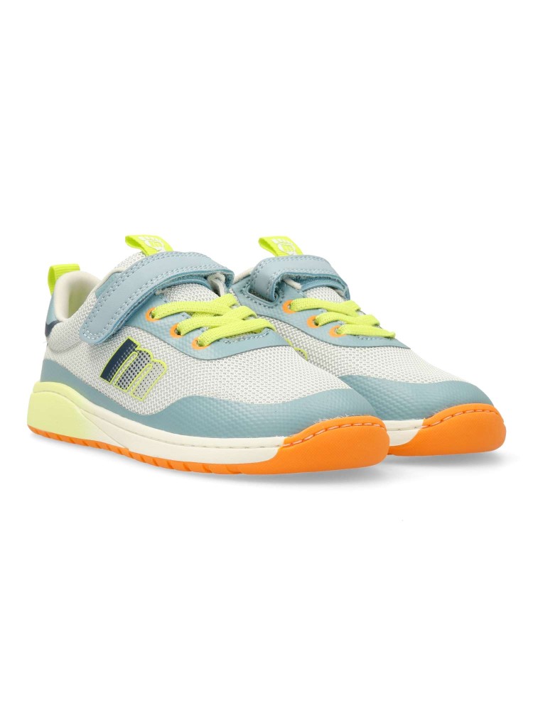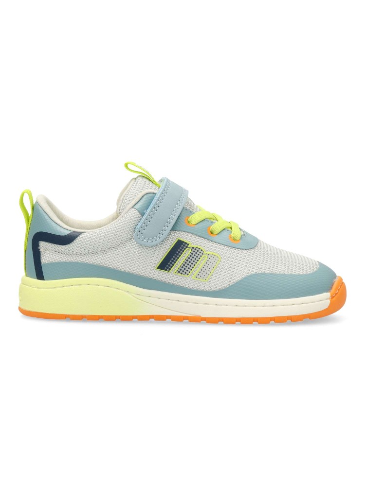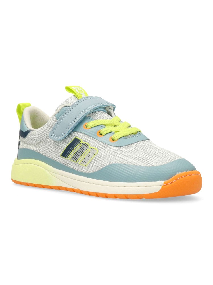 Deportiva Free Mustang. Cierre adherente y cordón elástico. Diseñado y desarrollado para respetar el desarrollo natural del pie del niño y la niña, gracias a una puntera ancha, elementos flexibles y torsionales y plantilla extraíble. Certificado vegano.