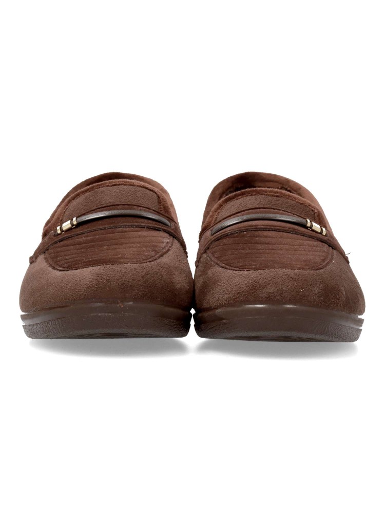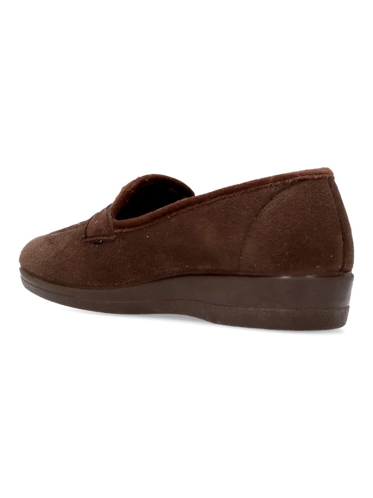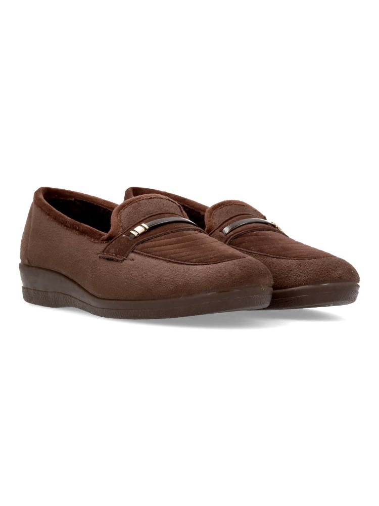 Zapatilla de casa para mujer. Color marrón. Fabricada en textil, con suela de caucho antideslizante, flexible y ligera. Zapatilla cerrada que ofrece confort y calidez para los días más fríos. Hecho en España.